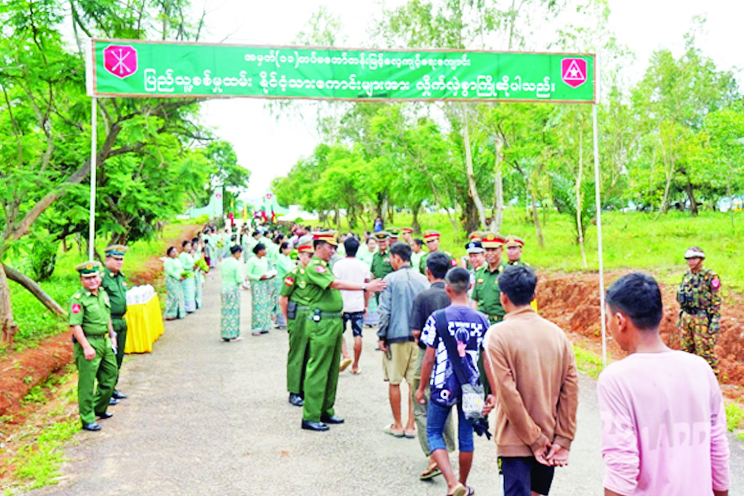 ရှမ်းပြည်နယ်အတွင်းရှိ ပြည်သူ့စစ်မှုထမ်း သင်တန်းအမှတ်စဉ်(၁၄)သို့ တက်ရောက်ကြမည့် နိုင်ငံ့သားကောင်းရတနာများအား ကြိုဆိုပွဲကို ယနေ့နံနက်ပိုင်းတွင် ကျိုင်းတုံမြို့ရှိ နယ်မြေခံသင်တန်းကျောင်း၌ ပြုလုပ်ရာ တြိဂံဒေသတိုင်းစစ်ဌာနချုပ်တိုင်းမှူး ဗိုလ်မှူးချုပ်စိုးလှိုင်နှင့် တာဝန်ရှိသူများ၊ အရာရှိ၊ စစ်သည်၊ မိသားစုဝင်များ၊ မြန်မာနိုင်ငံရဲတပ်ဖွဲ့ဝင်များ၊ စစ်မှုထမ်းဟောင်းအဖွဲ့ဝင်များ၊ ဌာနဆိုင်ရာတာဝန်ရှိသူများ၊ တိုင်းရင်းသားယဉ်ကျေးမှုအဖွဲ့များနှင့် ဒေသခံတိုင်းရင်းသားပြည်သူများ တက်ရောက်ကြသည်။
