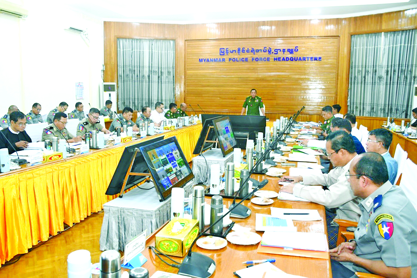 ပုဂ္ဂလိကလုံခြုံရေးဝန်ဆောင်မှုဆိုင်ရာ ကြီးကြပ်ကွပ်ကဲရေးဗဟိုကော်မတီအစည်းအဝေး အမှတ်စဉ် (၁/၂၀၂၅) ကို ယနေ့ မွန်းလွဲပိုင်းတွင် မြန်မာနိုင်ငံ ရဲတပ်ဖွဲ့ဌာနချုပ်အစည်းအဝေးခန်းမ (၁) ၌ ကျင်းပသည်။