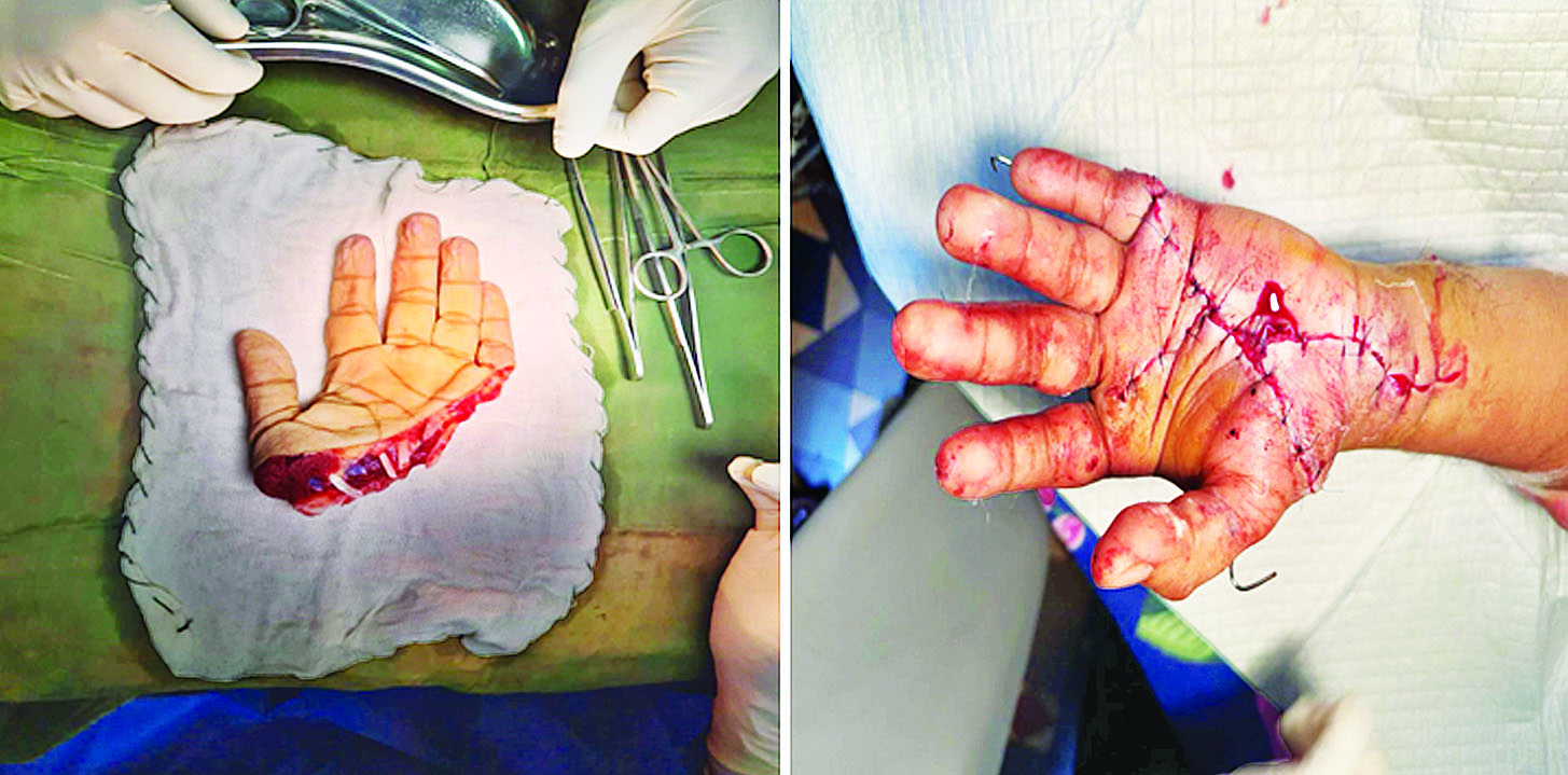 အဆိုပါလူနာအား ရန်ကုန်ပြည်သူ့ဆေးရုံကြီး အရေးပေါ်လူနာဌာန၌ လိုအပ်သော စမ်းသပ်စစ်ဆေးမှုများပြုလုပ်၍ ပြတ်တောက်သွားသော လက်ဖဝါးအား ပြန်ဆက်သည့်ခွဲစိတ်ကုသမှု(Replantation Surgery)ကို ည ၁၀ နာရီခွဲမှ စတင်၍ ဆောင်ရွက်ခဲ့ရာ မေ ၂၅ ရက် နံနက် ၅ နာရီခွဲတွင် အောင်မြင်စွာဆောင်ရွက် ပြီးစီးခဲ့သည်။
