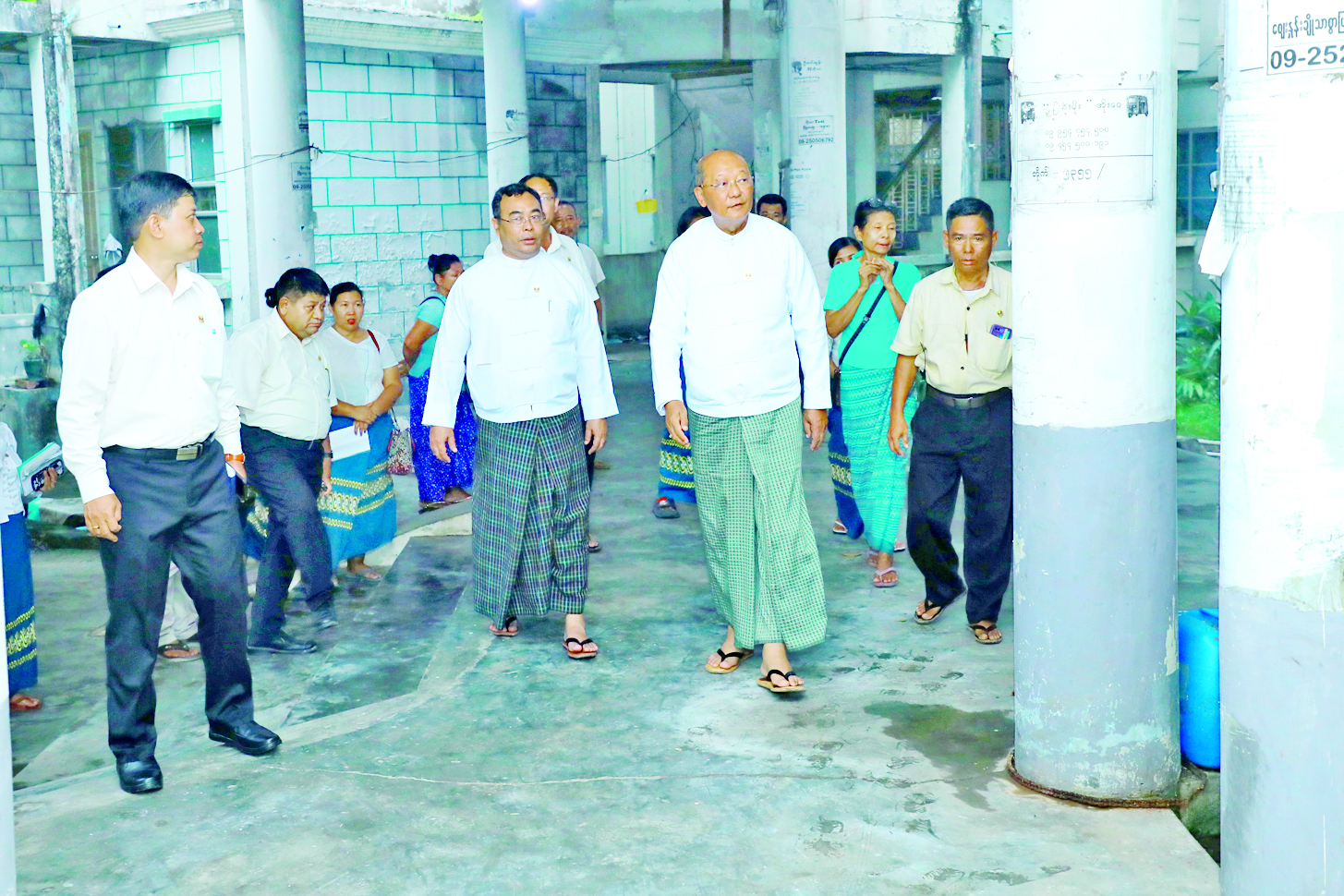 ဦးစွာ ပြည်ထောင်စုဝန်ကြီးနှင့်အဖွဲ့သည် အပြာရောင်အဆင့် သတ်မှတ်ထားသည့် အားကစားနှင့်လူငယ်ရေးရာဝန်ကြီးဌာန ဝန်ထမ်းများနေထိုင်ခဲ့သော ဇမ္ဗူသီရိမြို့နယ်အတွင်း ဘောဂသိဒ္ဓိရပ်ကွက်ရှိ ပိတောက်အိမ်ရာတိုက်အမှတ်(၈၂၁)နှင့် (၈၂၂)တို့တွင် ပြန်လည်ပြောင်းရွှေ့နေထိုင်ရန်အတွက် အသေးစားနှင့် အလတ်စားပြုပြင်မှုများ ပြန်လည်ပြုပြင်ဆောင်ရွက်ပြီးစီးမှုအခြေအနေများ၊ ဆောင်ရွက်ရန်လိုအပ်သည့် အခြေအနေများနှင့် ပြန်လည်ပြောင်းရွှေ့နေထိုင်နေသည့် ဝန်ထမ်းများနှင့် ဝန်ထမ်းမိသားစုဝင်များ အဆင်ပြေမှုရှိစေရေးတို့အတွက် လိုက်လံကြည့်ရှုစစ်ဆေးသည်။