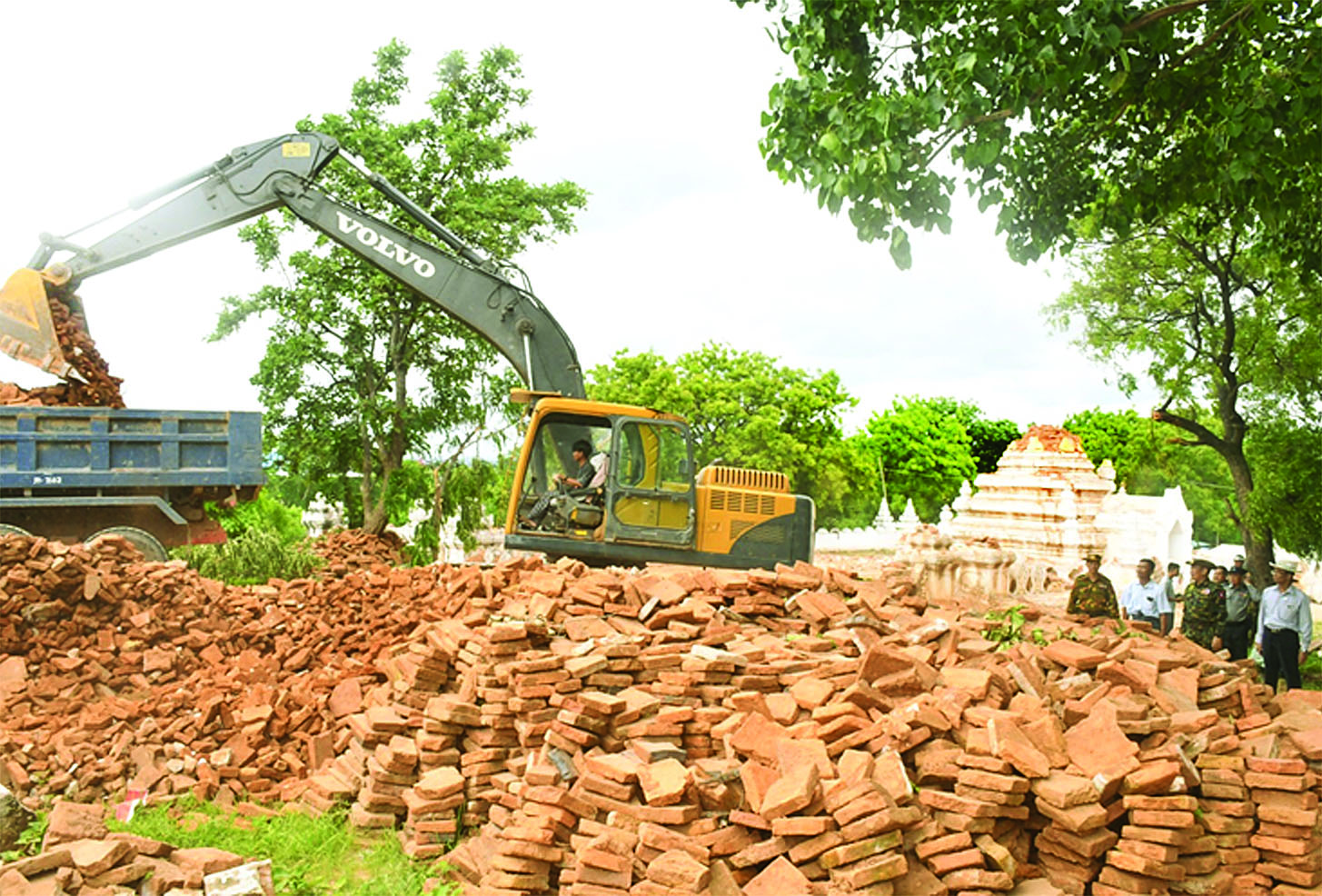 အလားတူ ကာကွယ်ရေးဦးစီးချုပ်ရုံး (ကြည်း) မှ ဒုတိယဗိုလ်ချုပ်ကြီး စိုးတင့်နိုင်နှင့် တာဝန်ရှိသူများသည် မန္တလေးမြို့ချမ်းမြသာစည် မြို့နယ်ကျွန်းလုံးဥသျှောင်ရပ်ကွက် ငါးစို့တိုက်သို့ရောက်ရှိပြီး ငလျင်ဒဏ်ကြောင့် ထိခိုက်ပျက်စီးခဲ့သော ဘုရားစေတီပုထိုးများနှင့် သာသနိကအဆောက်အအုံ အပျက်အစီးများအား တပ်မတော်သားများနှင့် စက်ယန္တရားကြီးများအသုံးပြု၍ အင်တိုက်အားတိုက် ဖယ်ရှားရှင်းလင်းဆောင်ရွက်နေမှု အခြေအနေများကိုလည်းကောင်း၊ ဖယ်ရှားရှင်းလင်းရာတွင် ပြန်လည်တွေ့ရှိသော ရှေးဟောင်း ဌာပနာပစ္စည်းများအားကြည့်ရှု စစ်ဆေးပြီး လုပ်ငန်းများအမြန်ဆုံး ဆောင်ရွက်နိုင်ရေး တာဝန်ရှိသူများအား လိုအပ်သည်များ ပေါင်းစပ်ညှိနှိုင်းဆောင်ရွက်ပေးသည်။