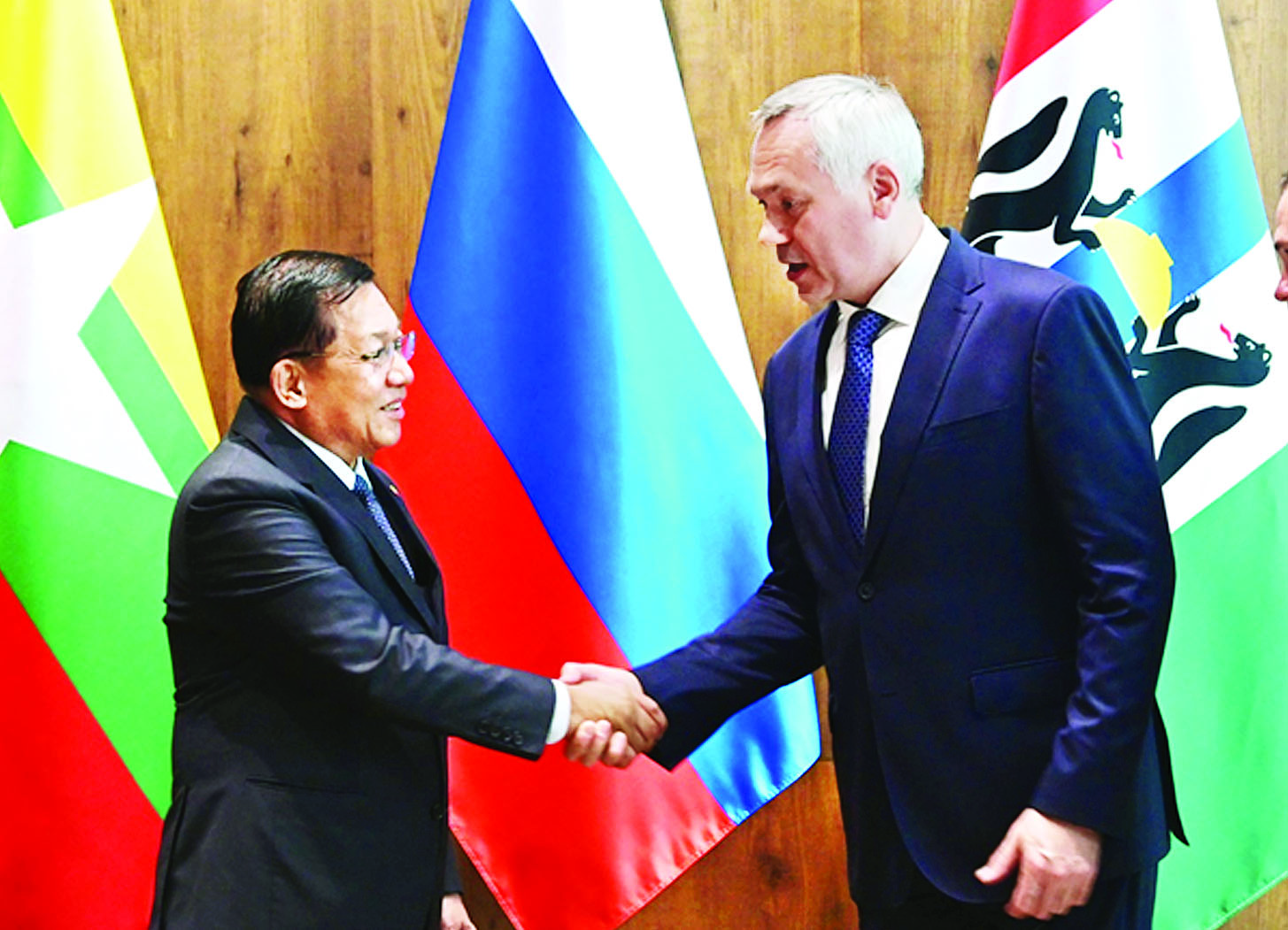 EAEU ၏ အလှည့်ကျဥက္ကဋ္ဌဖြစ်သည့် ဘယ်လာရုစ်သမ္မတ နိုင်ငံသမ္မတ H.E. Mr. Alexander Grigoryevich Lukashenko ၏ ဖိတ်ကြားချက်အရ မင့်စ်မြို့၌ ကျင်းပပြုလုပ်မည့် စတုတ္ထအကြိမ် ဥရောပ-အာရှ စီးပွားရေးဖိုရမ် (EEF 2025)သို့ တက်ရောက်ရန်အတွက် နိုင်ငံတော်စီမံအုပ်ချုပ်ရေးကောင်စီဥက္ကဋ္ဌ နိုင်ငံတော်ဝန်ကြီးချုပ် ဗိုလ်ချုပ်မှူးကြီးမင်းအောင်လှိုင် ဦးဆောင်သည့် မြန်မာအဆင့်မြင့် ကိုယ်စားလှယ်အဖွဲ့သည် ယနေ့နံနက်ပိုင်းတွင် မြန်မာနိုင်ငံမှ အထူးလေယာဉ်ဖြင့် ထွက်ခွာခဲ့ပြီး ညနေပိုင်းတွင် နိုဗာစီဗစ်မြို့ သာမာရှယ်ဗာလေဆိပ်သို့ရောက်ရှိရာ နိုဗာစီဗစ်ဒေသအုပ်ချုပ်ရေးမှူး Mr. Travnikov Ahdrey Aleksandrovich နှင့် တာဝန်ရှိသူများက လေဆိပ်၌ လှိုက်လှဲနွေးထွေးစွာ ကြိုဆိုနှုတ်ဆက်သည်။