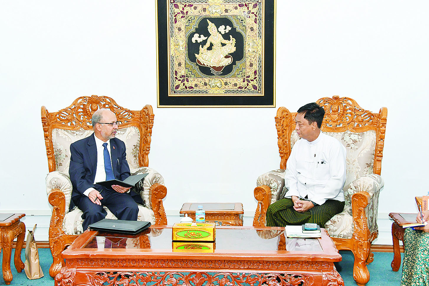 ထို့ပြင် နှစ်နိုင်ငံအကျိုးဖြစ်ထွန်းစေမည့် ကဏ္ဍများ၌ ပူးပေါင်းဆောင်ရွက်မှုမြှင့်တင်ရေး အမြင်ချင်းဖလှယ်ခဲ့ကြပြီး နှစ်နိုင်ငံအကြား ချစ်ကြည်ရင်းနှီးသည့် ဆက်ဆံရေးပိုမိုခိုင်မာစေရန် အတူတကွဆက်လက်လုပ်ဆောင်သွားကြရန် သဘောတူညီခဲ့ကြသည်။