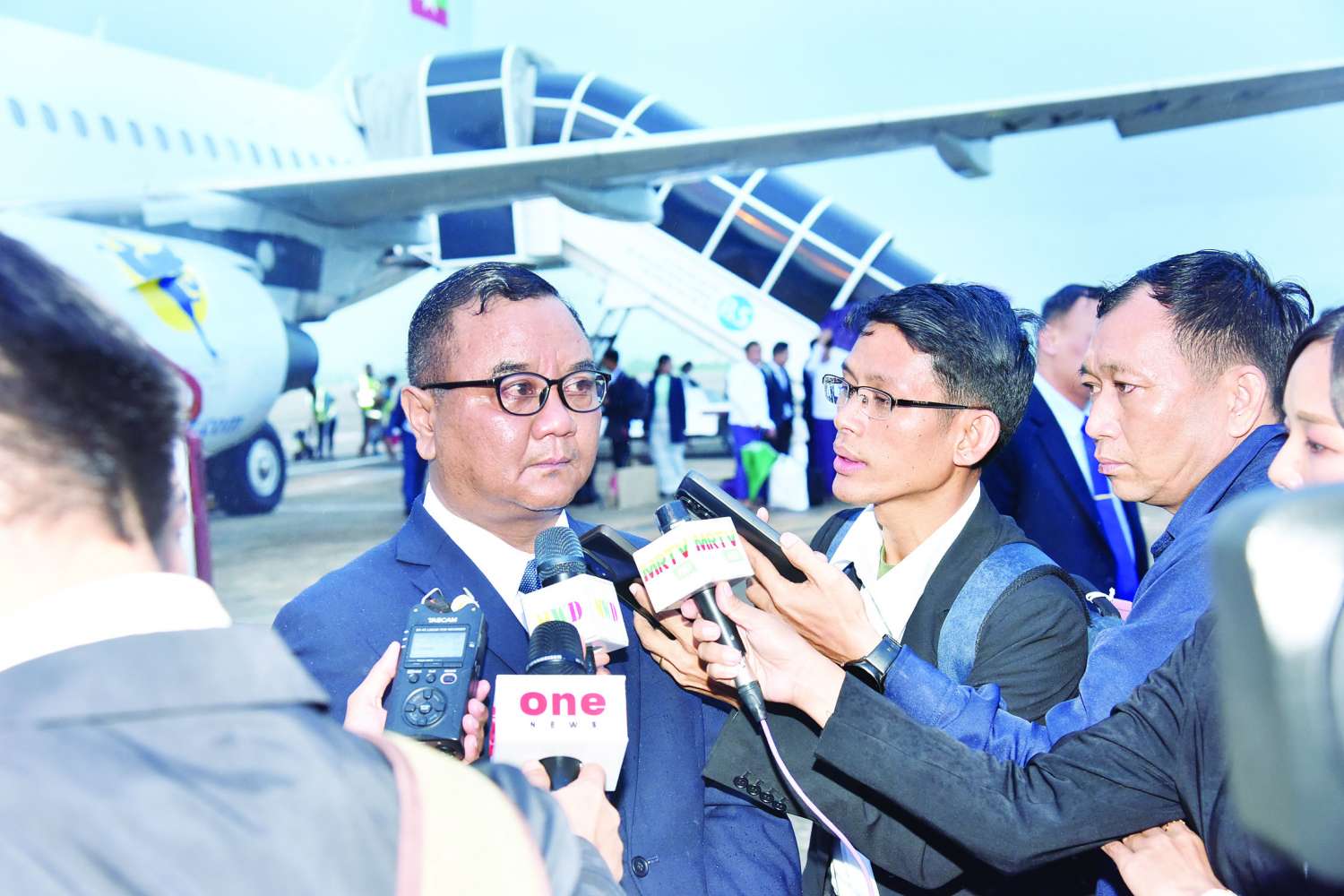 ဘယ်လာရုစ်နိုင်ငံ မင့်စ်မြို့၌ ကျင်းပပြုလုပ်ခဲ့သည့် စတုတ္ထအကြိမ် ဥရောပ-အာရှ စီးပွားရေးဖိုရမ် (EEF 2025) တက်ရောက်ခဲ့ပြီး နေပြည်တော်တပ်မတော်လေဆိပ်သို့ ပြန်လည်ရောက်ရှိစဉ် သတင်းမီဒီယာများ၏ မေးမြန်းမှုများအပေါ် နိုင်ငံတော်စီမံအုပ်ချုပ်ရေးကောင်စီ သတင်းထုတ်ပြန်ရေးအဖွဲ့ခေါင်းဆောင် ဗိုလ်ချုပ်ဇော်မင်းထွန်း၏ ဖြေကြားချက်