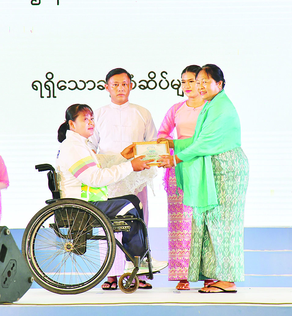 ထို့နောက် ဂုဏ်ထူးဆောင်နာယက ဒေါ်ခင်သက်ဌေးက ထူးချွန်အမျိုးသမီးရဲမေဆုရရှိသူ ရဲဒုတိယတပ်ကြပ် လက်ချ်မီးနှင့် ထူးချွန်အမျိုးသမီးကြက်ခြေနီဆုရရှိသူ ဒေါ်လင်းလင်းထိုက်တို့ကိုလည်းကောင်း၊ ဂုဏ်ထူးဆောင်နာယက ဒေါ်သန်းသန်းနွယ်က ၂၀၂၄ ခုနှစ် မသန်စွမ်းအမျိုးသမီးပြေးခုန်ပစ် အားကစားထူးချွန်ဆုရရှိသူ မထက်ထက်အေးနှင့် ၂၀၂၄ ခုနှစ် အမျိုးသမီးပီတန်းအားကစားထူးချွန်ဆုရရှိသူ မခင်ချယ်ရီသက်တို့ကိုလည်းကောင်း ဂုဏ်ပြုဆုတံဆိပ်၊ ဂုဏ်ပြုမှတ်တမ်းလွှာနှင့် ဂုဏ်ပြုဆုငွေများ ပေးအပ်ချီးမြှင့်ကြသည်။