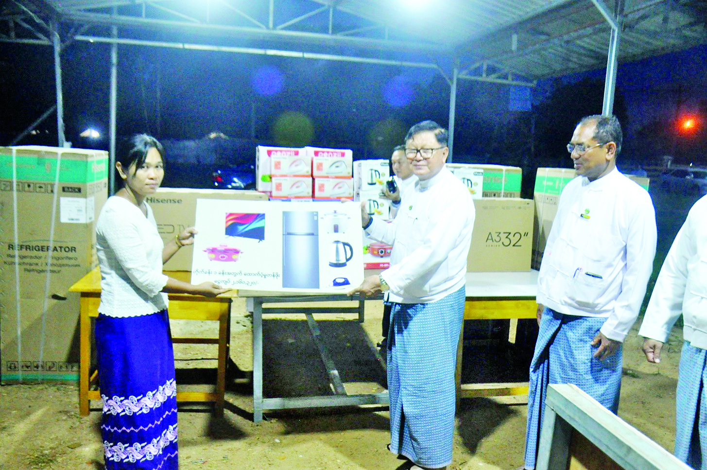 နိုင်ငံတော်စီမံအုပ်ချုပ်ရေးကောင်စီဥက္ကဋ္ဌ နိုင်ငံတော်ဝန်ကြီးချုပ်က ထောက်ပံ့သည့် Sharp နှင့် Hisense ရေခဲသေတ္တာ ၁၅ လုံး Hisense 32" TV ၁၅ လုံး၊ Alpha ထမင်းပေါင်းအိုး ၁၅ လုံး၊ panda လျှပ်စစ်ရေနွေးအိုး ၁၅ လုံး၊ penzil လျှပ်စစ်ဟင်းချက် အိုး ၁၅ လုံးနှင့် Samsonic လျှပ်စစ်မီးပူ ၁၅ လုံး တို့အား စိုက်ပျိုးရေး၊ မွေးမြူရေးနှင့်ဆည်မြောင်းဝန်ကြီးဌာန ရုံးအမှတ်(၂၆) ယာယီစခန်းရှိ ဝန်ကြီးရုံး ဝန်ထမ်းမိသားစုများ၊ ဆည်မြောင်းနှင့်ရေသုံးချမှုစီမံခန့်ခွဲရေးဦးစီးဌာန ယာယီစခန်းရှိ စက်မှုလယ်ယာဦးစီးဌာန ဝန်ထမ်းမိသားစုများ စုစုပေါင်းမိသားစု ၂၈ စုကို စိုက်ပျိုးရေး၊ မွေးမြူရေးနှင့် ဆည်မြောင်းဝန်ကြီးဌာန ဒုတိယဝန်ကြီး ဒေါက်တာအောင်ကြီးက လက်ဝယ်အရောက် လိုက်လံပေးအပ်ပြီး အားပေးစကားပြောကြားခဲ့ကြောင်း သိရသည်။