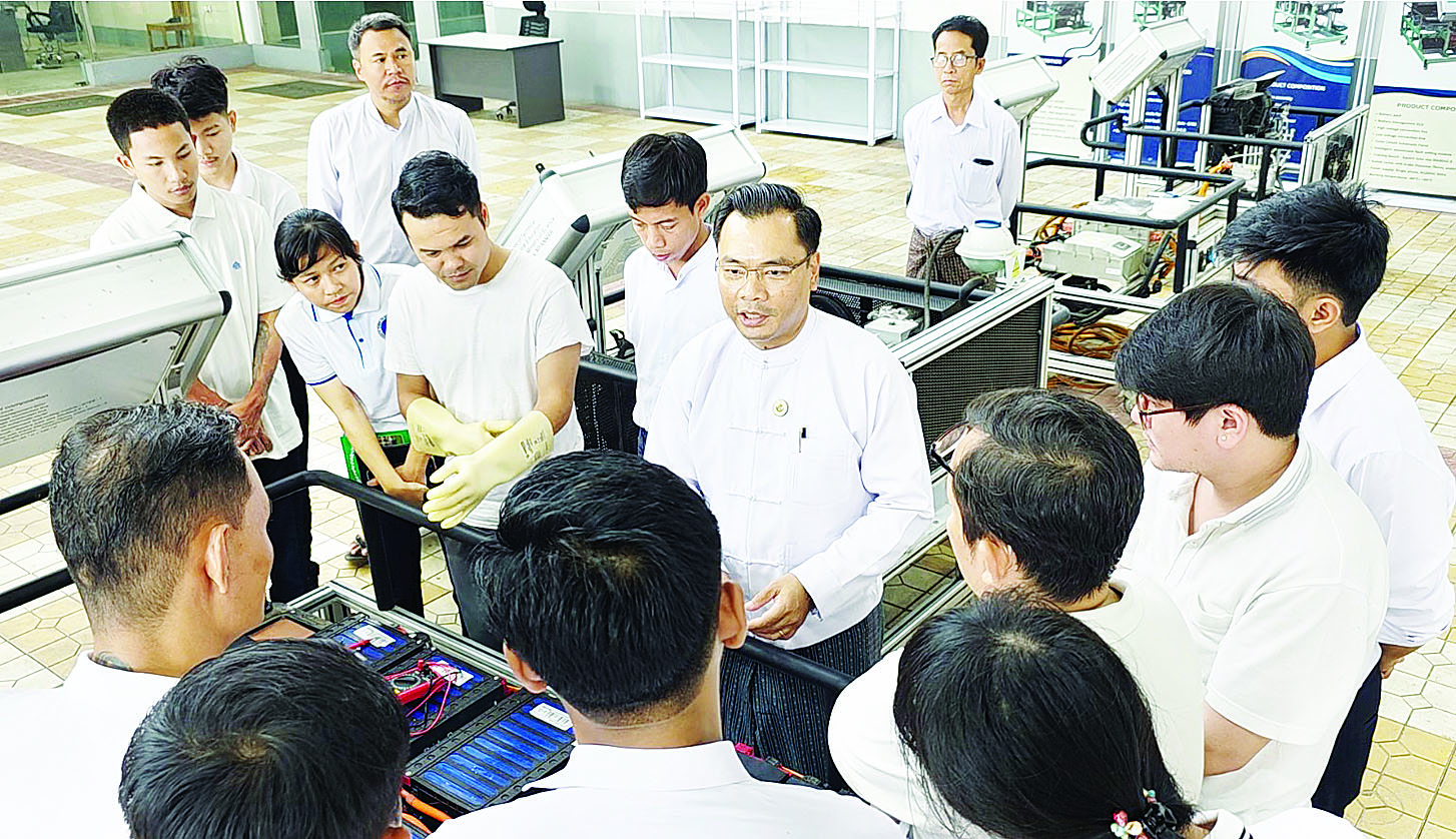 ယင်းနောက် ဒုတိယဝန်ကြီးသည် EV အလုပ်ရုံသို့သွားရောက်ကာ သင်တန်းသားများ၏ လက်တွေ့လုပ်ငန်းများကို အဆင့်မြင့်သင်ထောက်ကူမော်ကျူးများဖြင့် လေ့ကျင့်သင်ကြားနေမှုများကို လှည့်လည်ကြည့်ရှုအားပေးကာ လိုအပ်သည်များကို မှာကြားသည်။