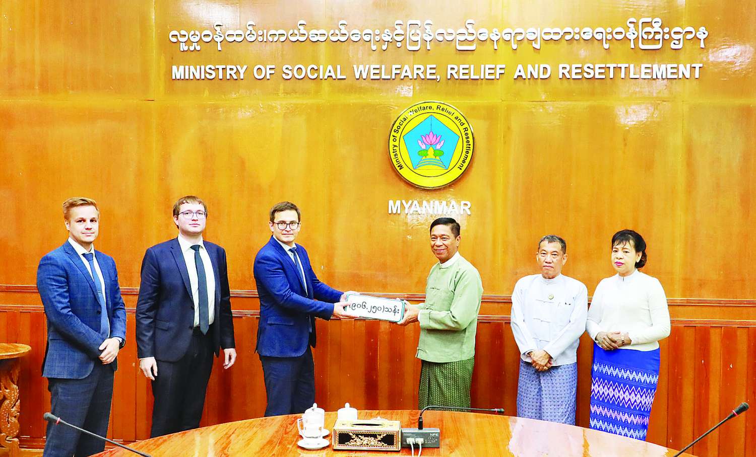 မန္တလေးငလျင်ဘေးသင့်ပြည်သူများအတွက် လိုအပ်သည့် ထောက်ပံ့မှုများနှင့် ပြန်လည်ထူထောင်ရေးလုပ်ငန်းများ ဆောင်ရွက်နိုင်ရန်အတွက် ရုရှားဖက်ဒရေးရှင်းနိုင်ငံ JSC “Rosoboronexport” ကုမ္ပဏီက ငွေကျပ် ၉၀၆ ဒသမ ၂၅၀ သန်းကို ယနေ့နံနက် ၁၀ နာရီတွင် လူမှုဝန်ထမ်း၊ ကယ်ဆယ်ရေးနှင့် ပြန်လည်နေရာချထားရေးဝန်ကြီးဌာန အစည်းအဝေးခန်းမ၌ လာရောက်ပေးအပ်လှူဒါန်းရာ ပြည်ထောင်စုဝန်ကြီး ဒေါက်တာစိုးဝင်းက လက်ခံရယူပြီး ကျေးဇူးတင်စကားပြောကြားကာ ဂုဏ်ပြုမှတ်တမ်းလွှာ ပြန်လည်ပေးအပ်ခဲ့ကြောင်း သတင်းရရှိသည်။