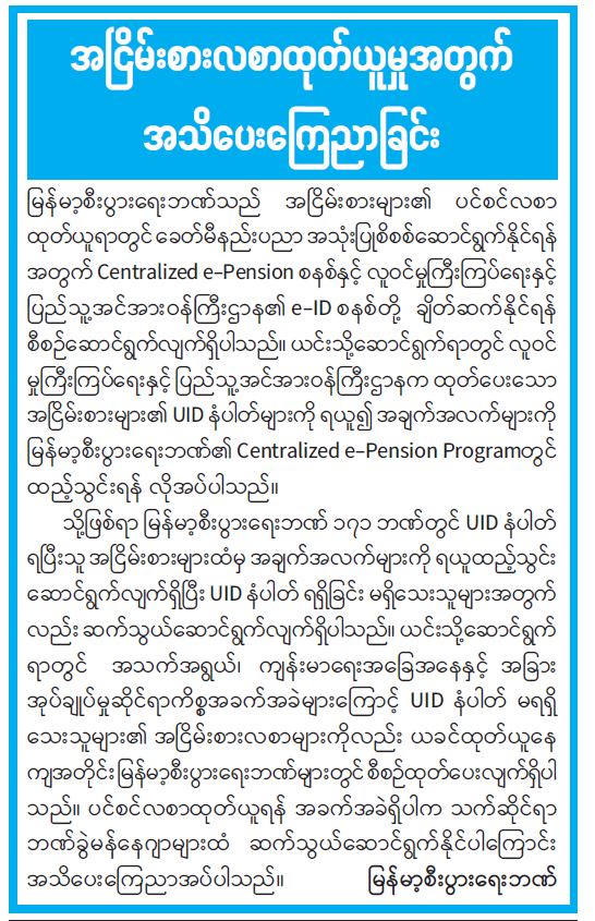 အငြိမ်းစားလစာထုတ်ယူမှုအတွက် အသိပေးကြေညာခြင်း