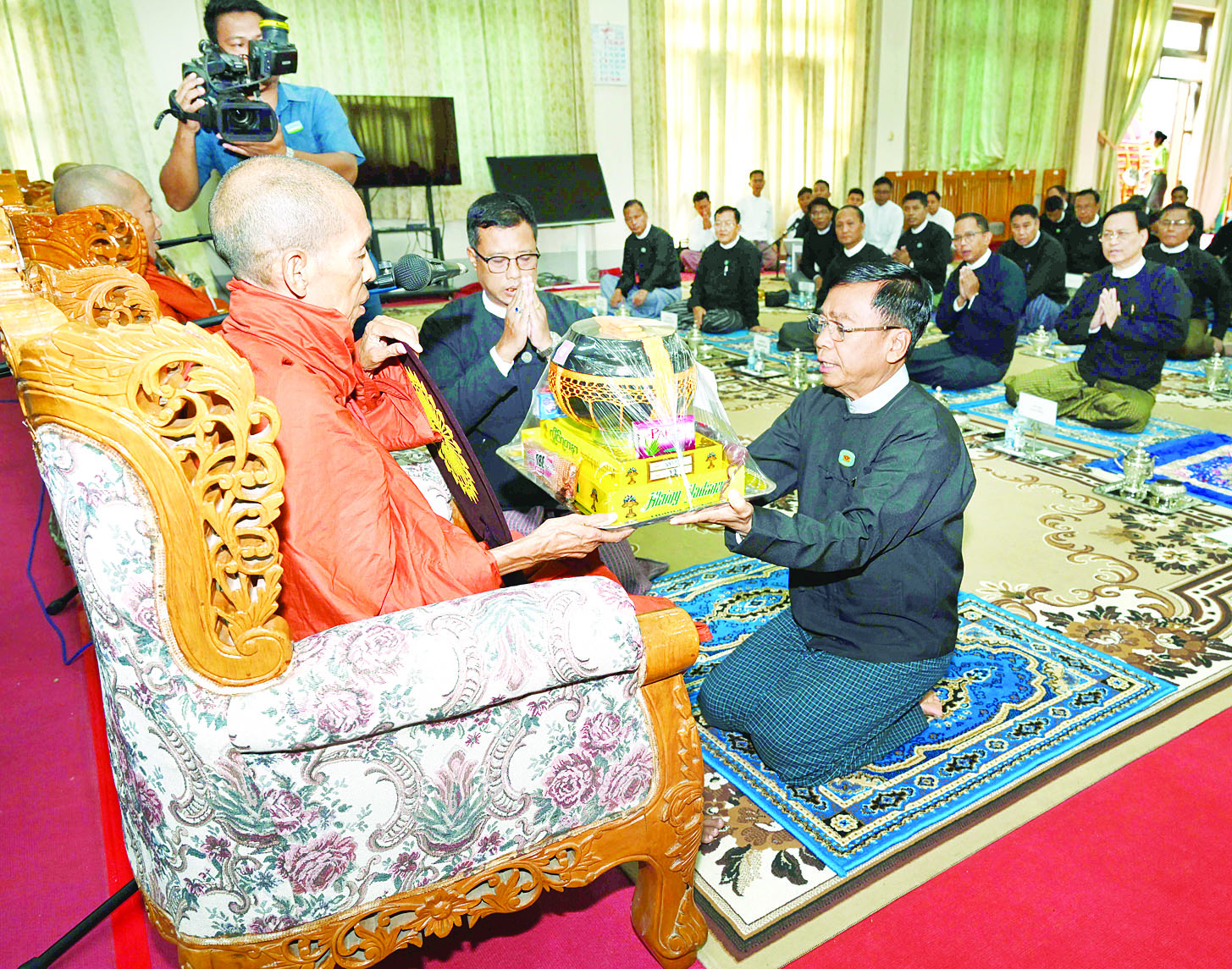 ထို့နောက် နေပြည်တော်ကောင်စီဥက္ကဋ္ဌနှင့် တာဝန်ရှိသူများသည် ဆရာတော်သံဃာတော် အရှင်သူမြတ်များအား လှူဖွယ်ပစ္စည်းများ ဆက်ကပ်လှူဒါန်းကြသည်။