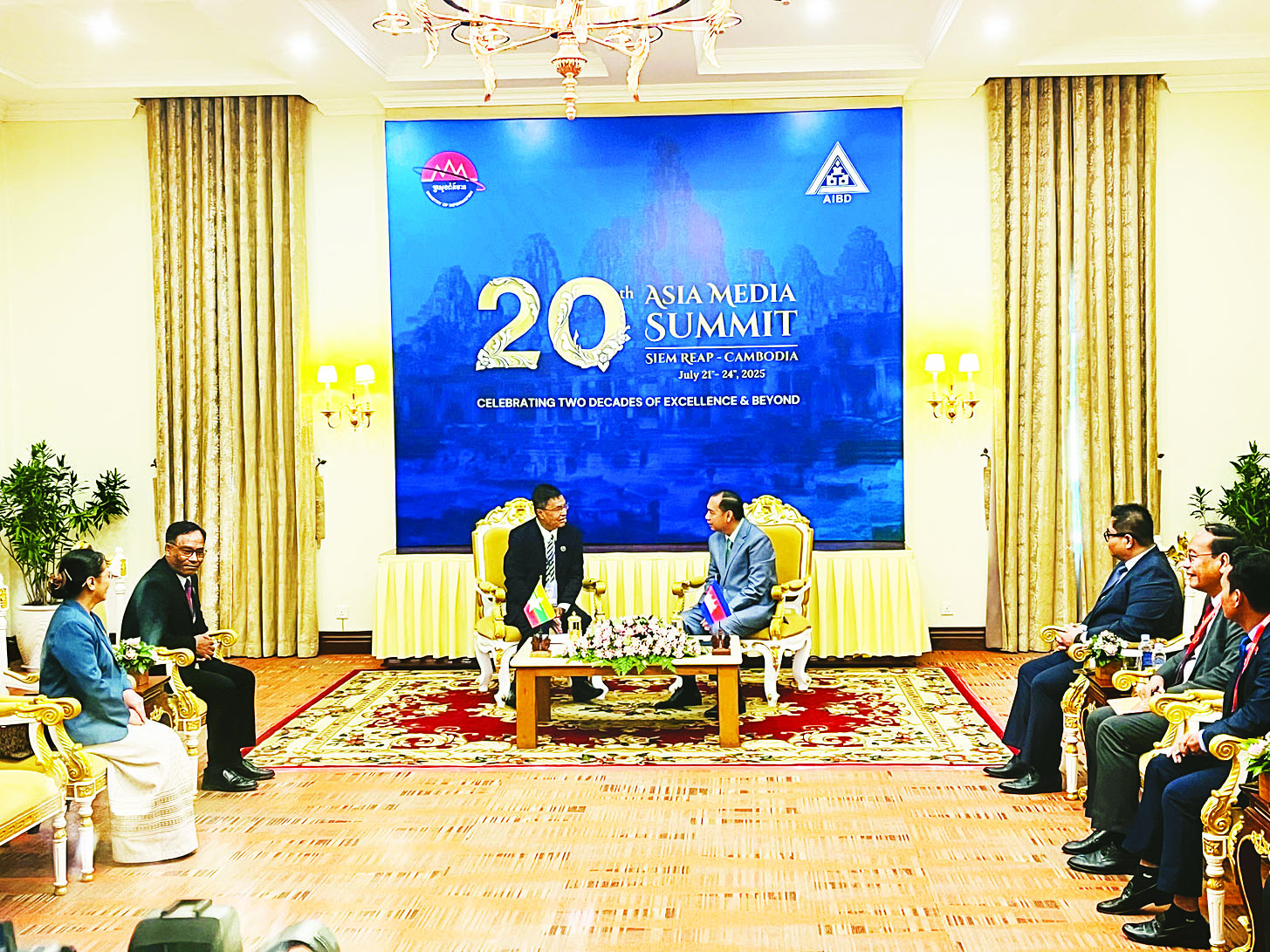 20th Asia Media Summit 2025 ကို ကမ္ဘောဒီယားနိုင်ငံ ပြန်ကြားရေးဝန်ကြီးဌာနနှင့် AIBD တို့ ပူးပေါင်း၍ “Celebrating Two Decades of Excellence & Beyond” ခေါင်းစဉ်ဖြင့် ကျင်းပခြင်းဖြစ်ပြီး ဆွေးနွေးပွဲများသို့ အာရှပစိဖိတ်နိုင်ငံများနှင့် အာဆီယံနိုင်ငံများမှ အစိုးရတာဝန်ရှိသူများနှင့် ကိုယ်စားလှယ်များ၊ မီဒီယာအဖွဲ့အစည်းများနှင့် မီဒီယာပညာရှင်များ၊ ကျောင်းသား ကျောင်းသူ လူငယ်များ ၄၀၀ ခန့် တက်ရောက်ကြကြောင်း သိရသည်။