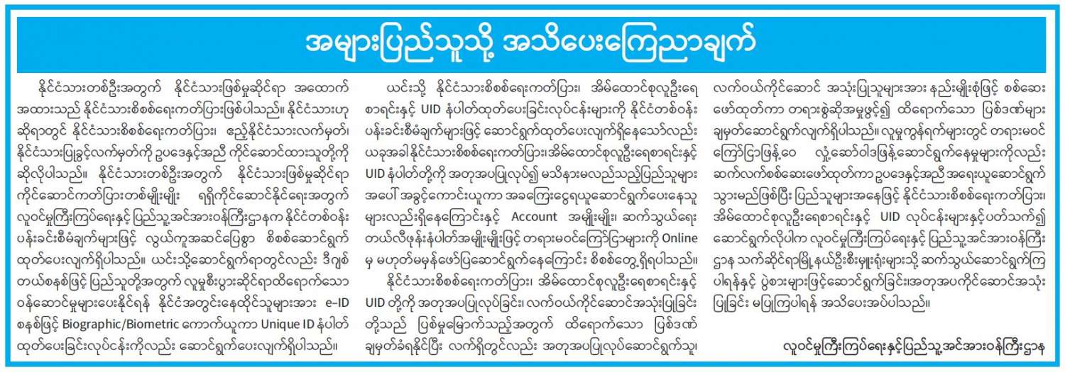 အများပြည်သူသို့ အသိပေးကြေညာချက်