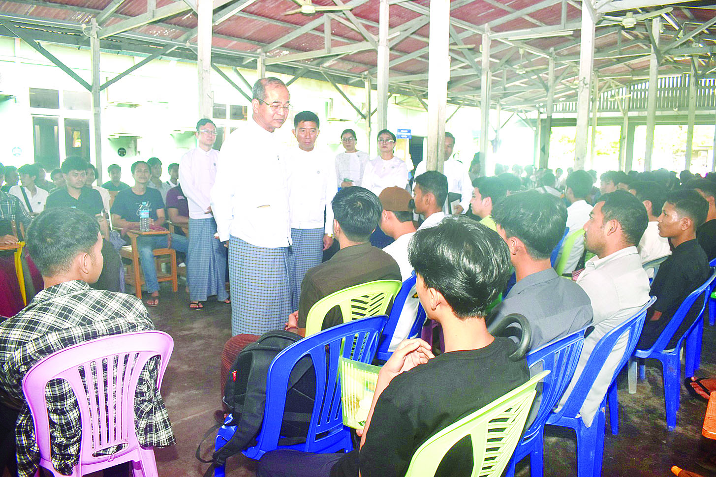 အလုပ်သမားဝန်ကြီးဌာန ဒုတိယဝန်ကြီး ဦးဝင်းရှိန်သည် ယနေ့တွင် ရန်ကုန်တိုင်းဒေသကြီး အလုပ်သမားရေးရာဌာနမှ တာဝန်ရှိသူများနှင့်အတူ ဒဂုံမြို့သစ် (မြောက်ပိုင်း) မြို့နယ်ရှိ ကျွမ်းကျင်မှုလေ့ကျင့်ရေးသင်တန်းကျောင်း၌ ကိုရီးယားဘာသာအရည်အချင်းစစ် (EPS) စာမေးပွဲအောင်မြင်သူများအား အလုပ်လျှောက်လွှာထုတ်ပေးနေမှုကို ကြည့်ရှုစစ်ဆေးသည်။
