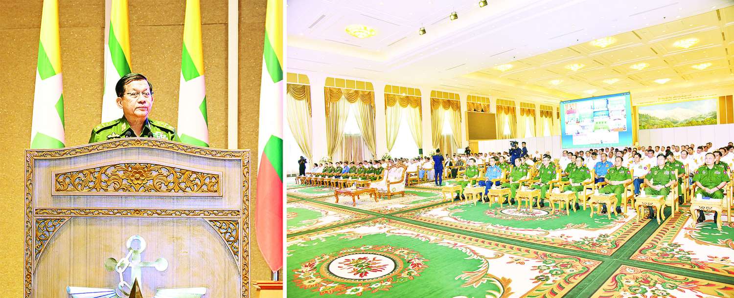ဆက်လက်၍ နိုင်ငံတော်စီမံအုပ်ချုပ်ရေးကောင်စီဥက္ကဋ္ဌ နိုင်ငံတော်ဝန်ကြီးချုပ်က နိုင်ငံတော်စီမံအုပ်ချုပ်ရေးကောင်စီ၏ ၄ နှစ်ကျော်ကာလတာဝန်ထမ်းဆောင်မှုနှင့်ပတ်သက်၍ “ကျွန်တော်တို့ ဒီကာလပေါ့၊ ၄ နှစ်ခွဲတာကာလအတွင်းမှာ လုပ်ငန်းအရပ်ရပ်အားလုံးကို အခက်အခဲပေါင်းစုံကနေပြီးတော့ ရင်ဆိုင်ကျော်လွှားပြီး ဒီလိုလက်ရှိ အခြေအနေမျိုးဖြစ်လာတဲ့အထိ ဝိုင်းဝန်းဆောင်ရွက်ပေးမှုများအတွက် တက်ရောက်လာကြတဲ့ လုပ်ဖော်ကိုင်ဖက်များအားလုံးကို ကျေးဇူးတင်ပါတယ်၊ နောင်မှာလည်း ဆက်လျှောက်ရမယ့်ခရီးစဉ်တွေမှာလည်း ကျွန်တော်တို့ ဒီလိုပဲအောင်အောင်မြင်မြင်ဖြစ်အောင် ဝိုင်းဝန်းကူညီပေးကြဖို့လည်း ကျွန်တော်တိုက်တွန်းလိုပါတယ်၊ ဆက်လျှောက်လှမ်းမယ့်ခရီး၊ နိုင်ငံတော်ရဲ့ရှေ့ခရီးကတော့ အများကြီးကျန်ပါသေးတယ်၊ ဒါတွေက ကျွန်တော်တို့က ဒုတိယစာမျက်နှာရဲ့အစ ဖြစ်ပါတယ်၊ ပထမစာမျက်နှာကတော့ ကျွန်တော်တို့ ကျော်ခဲ့ပြီးပြီ၊ ဒုတိယစာမျက်နှာအစကို ကျွန်တော်တို့သွားတာပေါ့၊ ဒုတိယစာမျက်နှာအစမှာ ကျွန်တော်တို့ တကယ့်ကောင်းမွန်လှတဲ့ လက်ရေးလှလှလေးနဲ့ရေးပြီးတော့မှ အောင်မြင်အောင်ဆောင်ရွက်ပေးနိုင်မယ်ဆိုရင်တော့ ကျွန်တော်တို့ရဲ့အခက်အခဲပေါင်းစုံက ရင်ဆိုင်ပြီးတော့ လုပ်ရတဲ့လုပ်ရကျိုးကနေ ပိုပြီးလုပ်ရကျိုးနပ်မယ်လို့ ကျွန်တော်ယုံကြည်ပါတယ်၊ အားလုံးပဲအစစအရာရာ အောင်မြင်တိုးတက်ကြပါစေကြောင်း ဆုမွန်ကောင်းတောင်းပေးလိုက်ပါတယ်။ ကျေးဇူးလည်းအများကြီးတင်ပါတယ်” ဟု ပြောကြားသည်။