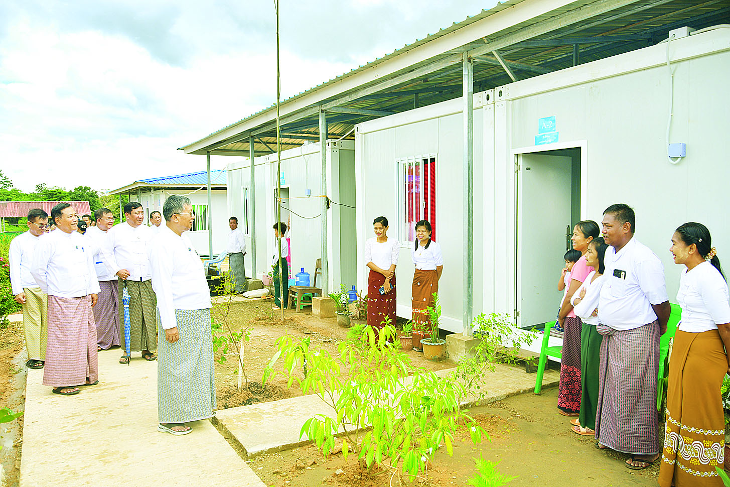ဦးစွာ ပြည်ထောင်စုဝန်ကြီးသည် တာဝန်ရှိသူများနှင့်အတူ ယာယီနေထိုင်ရန် စီစဉ်ဆောင်ရွက်ထားသည့် ရွှေအင်ကြင်းရိပ်သာ၊ ရွှေတမာရိပ်သာနှင့် ရွှေညောင်ပင်ရိပ်သာတို့ရှိ Container House များ၊ အမျိုးသားပြတိုက် (နေပြည်တော်)ရှိ Container House များ၊ ရန်အောင်မြင်ရွှေလက်လှစေတီတော်ပရိဝုဏ်ရှိ Container House များနှင့် သဒ္ဓမ္မဝေပုလ္လကျောင်း တိုက်ရှိ Container House များတွင် ဝန်ကြီးရုံးနှင့် ဝန်ကြီးဌာနအောက်ရှိ ဦးစီးဌာနများမှ ဝန်ထမ်းနှင့် ဝန်ထမ်းမိသားစုများ ပြောင်းရွှေ့နေထိုင်မှုအခြေအနေကို လှည့်လည်ကြည့်ရှုပြီး လိုအပ်သည်များကို မှာကြားဖြည့်ဆည်း ဆောင်ရွက်ပေးသည်။