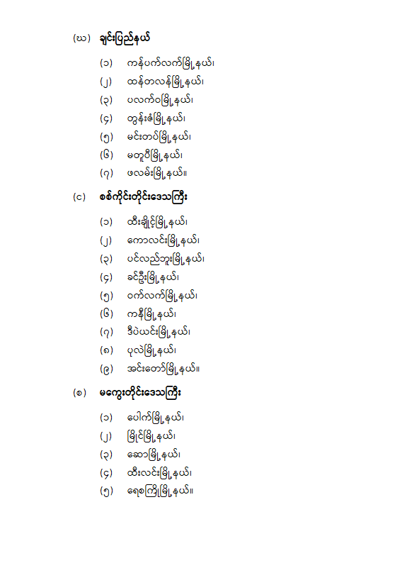 ဝန်ကြီးဌာန ကြေညာချက်များ