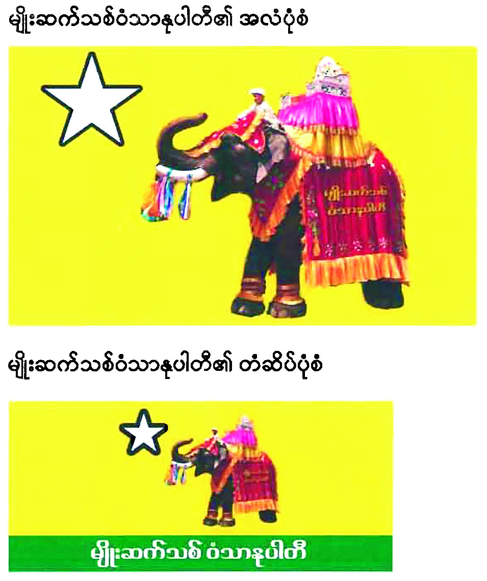 ၂။ ယင်းအဖွဲ့အစည်းက အသုံးပြုမည့် ပါတီအမည်၊ အလံနှင့် တံဆိပ်တို့ကို ကန့်ကွက်လိုက ယခုကြေညာသည့်နေ့မှစ၍ (၇) ရက်အတွင်း ခိုင်လုံသော အထောက်အထားများဖြင့် ပြည်ထောင်စုရွေးကောက်ပွဲကော်မရှင်သို့ ကန့်ကွက်နိုင်ပါကြောင်း နိုင်ငံရေးပါတီများ မှတ်ပုံတင်ခြင်း နည်းဥပဒေ ၁၄ (ဃ) အရ အများသိစေရန် ကြေညာအပ်ပါသည်။