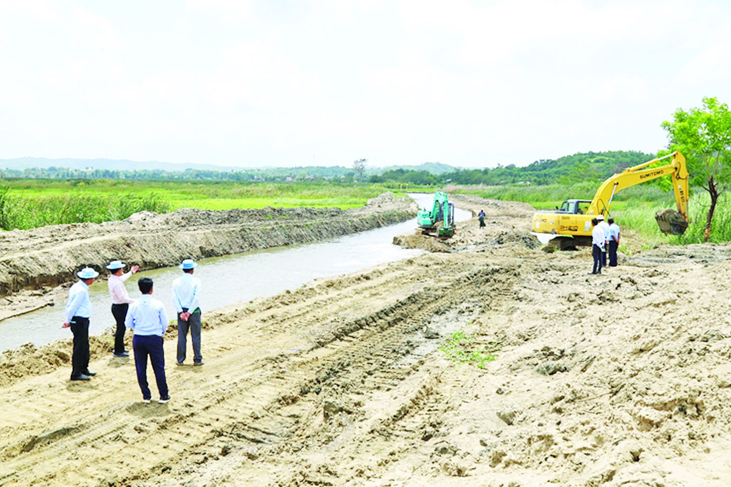 စိုက်ပျိုးရေး၊ မွေးမြူရေးနှင့်ဆည်မြောင်းဝန်ကြီးဌာန ပြည်ထောင်စုဝန်ကြီး ဦးမင်းနောင်သည် ယနေ့မွန်းလွဲပိုင်းတွင် ဒုတိယဝန်ကြီး ဦးဗိုလ်ဗိုလ်ကျော်နှင့်အတူ နေပြည်တော် တပ်ကုန်းမြို့နယ် ဆင်သေဆည်ရေသောက်စနစ်အတွင်း ယခုနှစ် လျာထားမိုးစပါး ၈၄၈၆ ဧကနှင့် မိုးသီးနှံ ၃၁၂၃ ဧက အပြည့်အဝစိုက်ပျိုးနိုင်ရန် ရေသောက်စနစ်အတွင်း စိုက်ပျိုးရေအဆင်ပြေချောမွေ့စွာပေးဝေနိုင်ရေး စီမံဆောင်ရွက်နေမှုများကို ကွင်းဆင်းစစ်ဆေးသည်။
