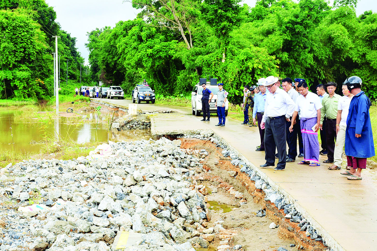 ထို့နောက် ဘားအံမြို့နယ် ကော့လှိုက်ကျေးရွာ ထန်းတပင်-ကော့လှိုက် - ဝင်းကျန် - ကရင် ဖာလင်ထုံးအိုင်လမ်းဘေးဝဲယာရှိ မိုးစပါးစိုက်ခင်းများ ရေကြီးရေလျှံမှုကြောင့် အဆိုပါလမ်းပိုင်းလမ်းပခုံးနှင့် လမ်းသားထိခိုက်မှုများအား ကြည့်ရှုစစ်ဆေးကာ ထိခိုက်မိုးစပါးများ ပြန်လည်ကုစားပေးနိုင်ရေးနှင့် ထိခိုက်လမ်း/တံတားများကို လိုအပ်သည့် ပြင်ဆင်မှုများ အမြန်ဆုံးဆောင်ရွက်ပေးနိုင်ရေးမှာကြားသည်။