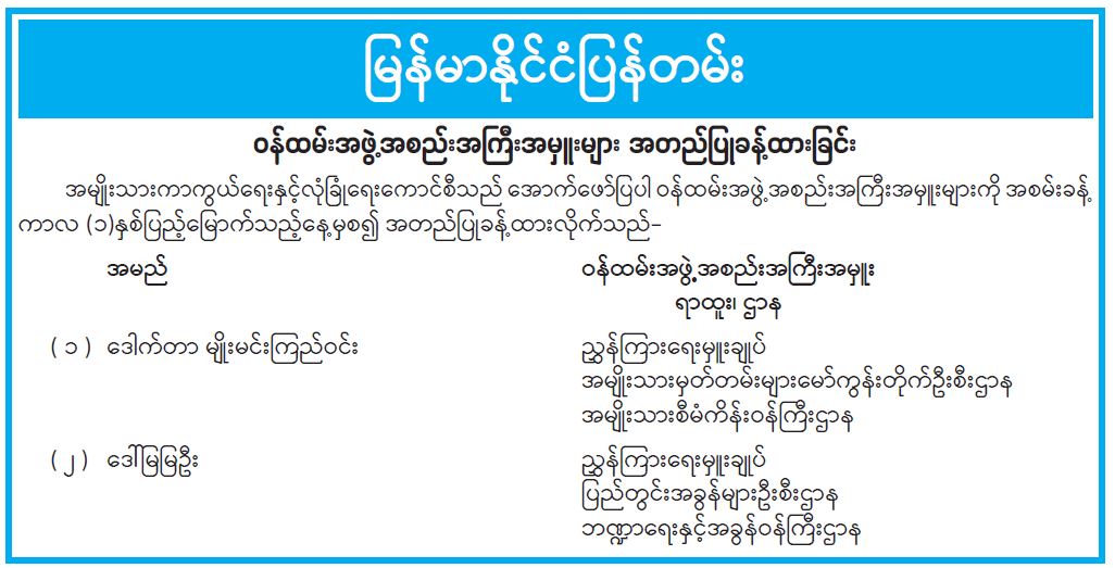 ဝန်ကြီးဌာန ကြေညာချက်များ