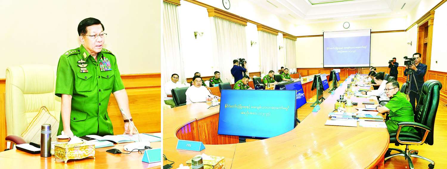 နိုင်ငံတော်လုံခြုံရေးနှင့် အေးချမ်းသာယာရေးကော်မရှင်အစည်းအဝေးကို ယနေ့နံနက်ပိုင်းတွင် ကျင်းပပြုလုပ်ရာ နိုင်ငံတော်လုံခြုံရေးနှင့် အေးချမ်းသာယာရေးကော်မရှင်ဥက္ကဋ္ဌ ဗိုလ်ချုပ်မှူးကြီး မင်းအောင်လှိုင် တက်ရောက်အမှာစကား ပြောကြားသည်။