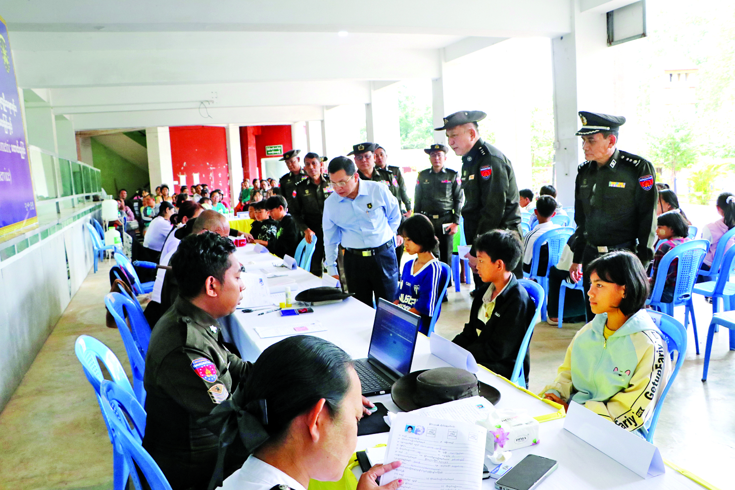 ပြည်ထောင်စုဝန်ကြီး ဦးမြင့်ကြိုင် ပြင်ဦးလွင်မြို့နယ် ဦးစီးမှူးရုံး၌ အိမ်ထောင်စုလူဦးရေစာရင်းနှင့် နိုင်ငံသားစိစစ်ရေးကတ်ပြားထုတ်ပေးခြင်းလုပ်ငန်းများ ဆောင်ရွက်နေမှုကြည့်ရှုအားပေး