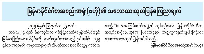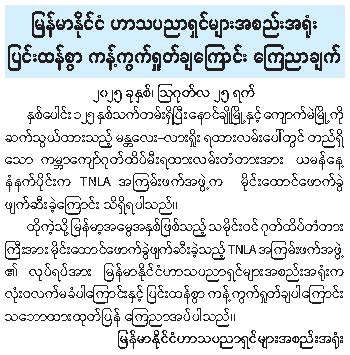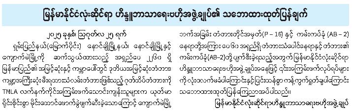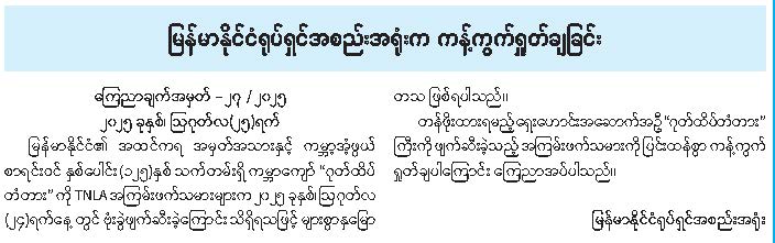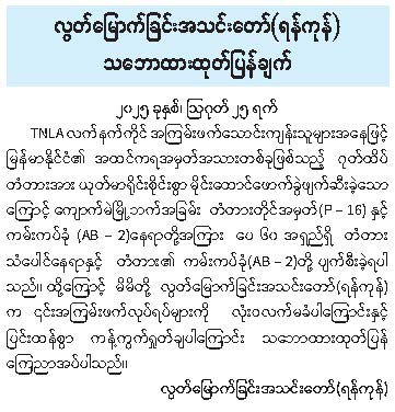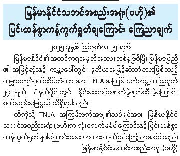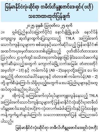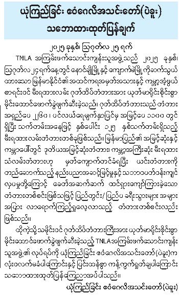 မြန်မာနိုင်ငံ၏ အထင်ကရအမှတ်အသားတစ်ခုဖြစ်ပြီး ကမ္ဘာ့အံ့ဖွယ်စာရင်းတွင်လည်း ပါဝင်ခဲ့သည့် နှစ်ပေါင်း ၁၂၅ နှစ်သက်တမ်းရှိ ကမ္ဘာကျော်ဂုတ်ထိပ်မီးရထားလမ်းတံတားအား ထိန်းသိမ်းစောင့်ရှောက်ရမည့်အစား TNLA အကြမ်းဖက်သောင်းကျန်းသူများက စစ်ရေးနှင့် သက်ဆိုင်ခြင်းမရှိဘဲ ဆင်ခြင်တုံတရားကင်းမဲ့စွာ မိုင်းထောင်ဖောက်ခွဲဖျက်ဆီးခဲ့မှုအပေါ် ပြည်သူလူထုတစ်ရပ်လုံးက လုံးဝလက်ခံနိုင်ခြင်းမရှိဘဲ ကန့်ကွက်ရှုတ်ချလျက်ရှိသည်။