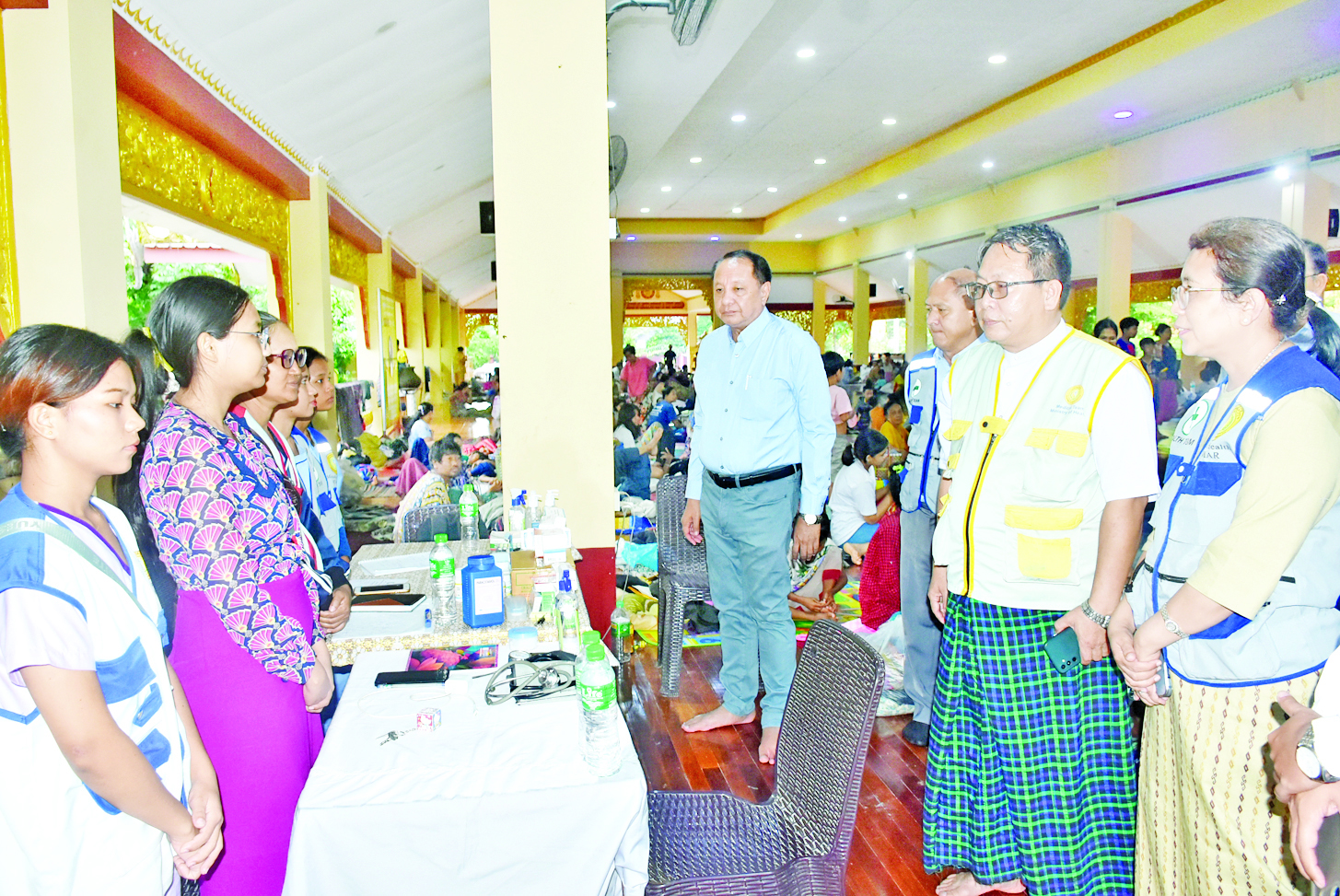 ကျန်းမာရေးဝန်ကြီးဌာန ပြည်သူ့ကျန်းမာရေးဦးစီးဌာနနှင့် ကုသရေးဦးစီးဌာနတို့မှတာဝန်ရှိသူများပါဝင်သည့် ဗဟိုကွင်းဆင်းအဖွဲ့သည် ယမန်နေ့ညနေပိုင်းက နေပြည်တော် ပျဉ်းမနားမြို့နယ် အုန်းတောပရိယတ္တိစာသင်တိုက် ယာယီရေဘေးရှောင်စခန်း၊ ပျဉ်းမနားမြို့နယ် ရန်အောင် (၁) ရပ်ကွက် လယ်တီစံကျောင်းတိုက် ယာယီရေဘေးရှောင်စခန်းနှင့် လယ်ဝေးမြို့နယ် အေလာရှိ ဂိုဏ်းထောက်ကျောင်းတိုက် ယာယီရေဘေးရှောင် စခန်းများသို့ ကွင်းဆင်းကြည့်ရှုစစ်ဆေးသည်။