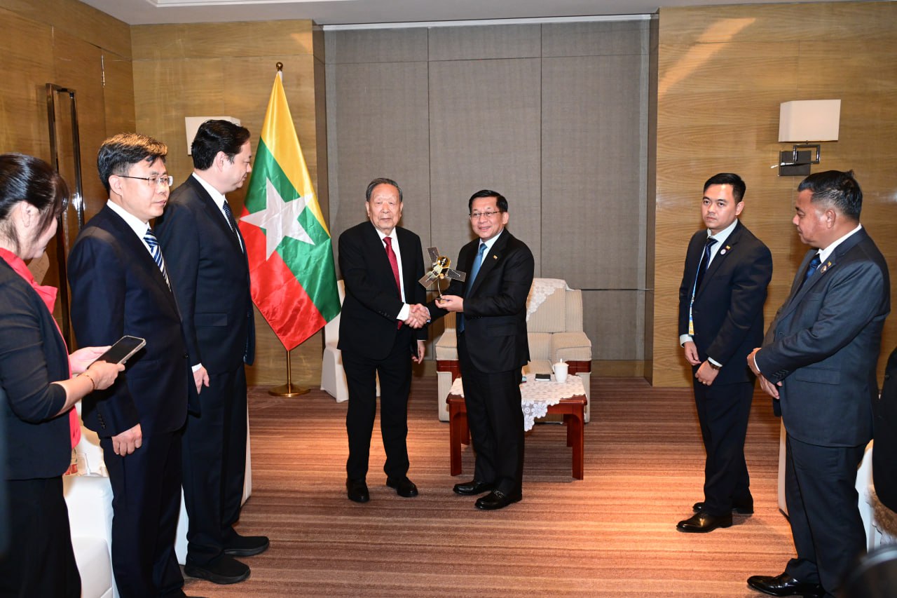 ပြည်ထောင်စုသမ္မတမြန်မာနိုင်ငံတော် ယာယီသမ္မတ နိုင်ငံတော်လုံခြုံရေးနှင့် အေးချမ်းသာယာရေးကော်မရှင် ဥက္ကဋ္ဌ ဗိုလ်ချုပ်မှူးကြီး မင်းအောင်လှိုင် တရုတ်ပြည်သူ့သမ္မတနိုင်ငံ၊ ဝူဟန်တက္ကသိုလ်မှ ဒုတိယအဓိပတိနှင့် တွေ့ဆုံဆွေးနွေး
