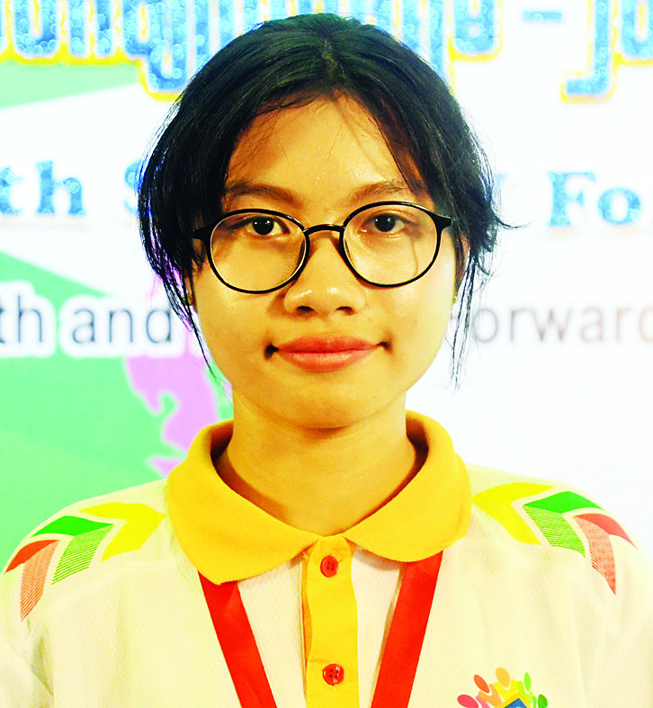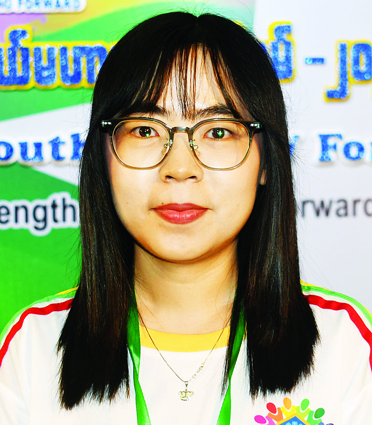 ကျွန်မက အခုဖိုရမ်ကို ရခိုင်ပြည်နယ်ကိုယ်စားပြု တက်ရောက်တာဖြစ်ပါတယ်။ ဒီနေ့ကျင်းပတဲ့ ဖိုရမ်ဟာ တိုင်းရင်းသားတွေကြားမှာ ချစ်ကြည်ရင်းနှီးမှုကို ဖြစ်ပေါ်စေပြီး စည်းလုံးညီညွတ်မှုကို ပိုမိုရရှိစေတယ်လို့ မြင်ပါတယ်။ ပြီးတော့ ဒီဖိုရမ်က နိုင်ငံနဲ့ လူမျိုးအတွက် အကျိုးကျေးဇူးတွေ အများကြီးရရှိအောင် အထောက်အပံ့ဖြစ်စေတယ်လို့ ယုံကြည်ပါတယ်။ ကျွန်မတို့လူငယ်တွေဟာ ဖိုရမ်ကရရှိလာတဲ့ အတွေးအမြင်တွေ၊ အသိပညာတွေကို လက်တွေ့အသုံးချပြီးတော့ ကိုယ့်ဒေသကောင်းကျိုး၊ ကိုယ့်နိုင်ငံကောင်းကျိုးကို ဖော်ဆောင်သွားနိုင်မယ်။ ဒီလိုမျိုးလူငယ်တစ်ဦးဖြစ်စေဖို့ အကောင်းဆုံးကြိုးစားသွားပါ့မယ်။