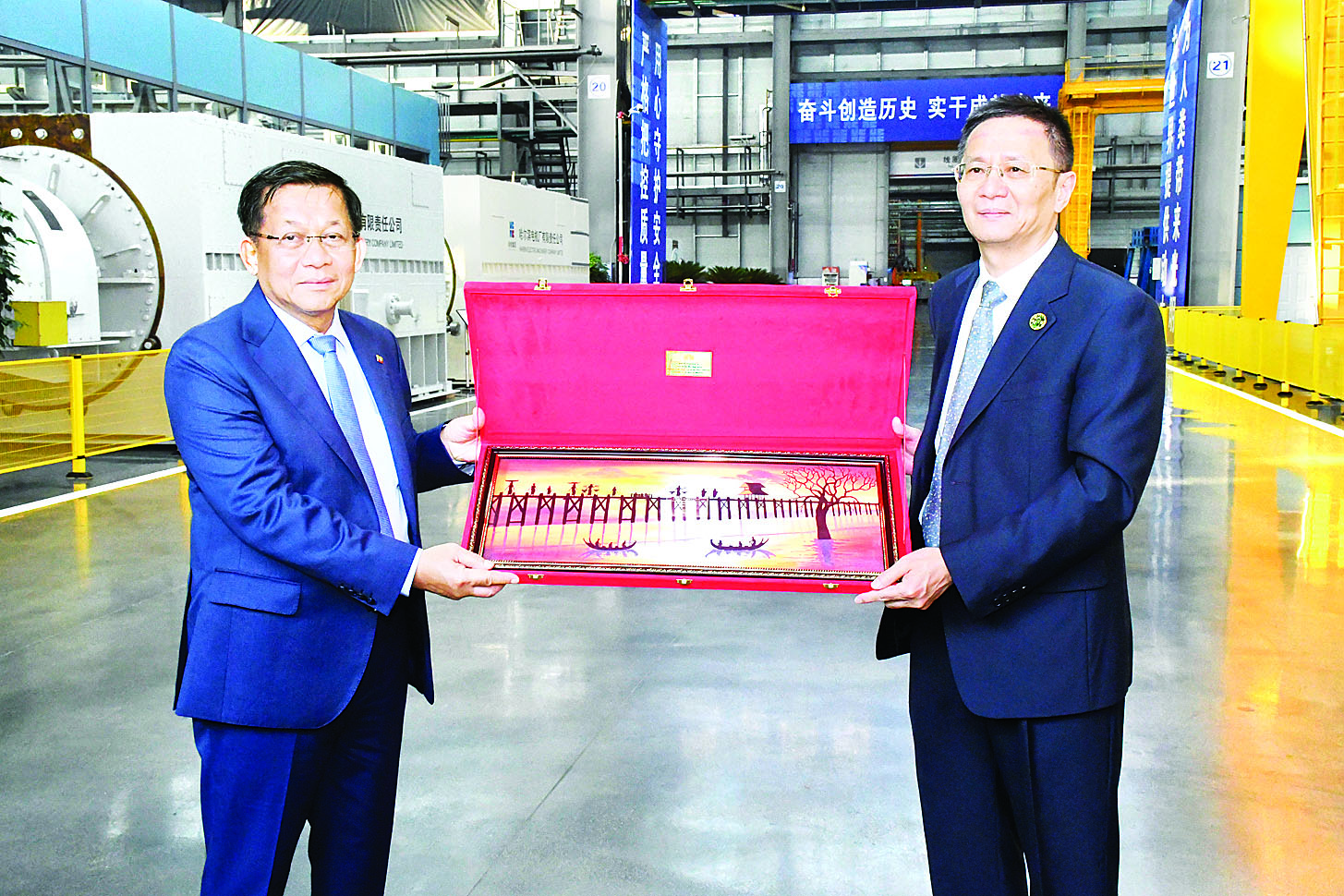 ဆက်လက်ပြီး ပြည်ထောင်စုသမ္မတမြန်မာနိုင်ငံတော် ယာယီသမ္မတ နိုင်ငံတော်လုံခြုံရေးနှင့် အေးချမ်းသာယာရေးကော်မရှင်ဥက္ကဋ္ဌဦးဆောင်သည့် မြန်မာကိုယ်စားလှယ်အဖွဲ့သည် ညနေပိုင်းတွင် Harbin Electric Corporation သို့သွားရောက် လေ့လာကြရာ Harbin Electric Corporation မှ တာဝန်ရှိသူများက ကြိုဆိုနှုတ်ဆက်ကြသည်။