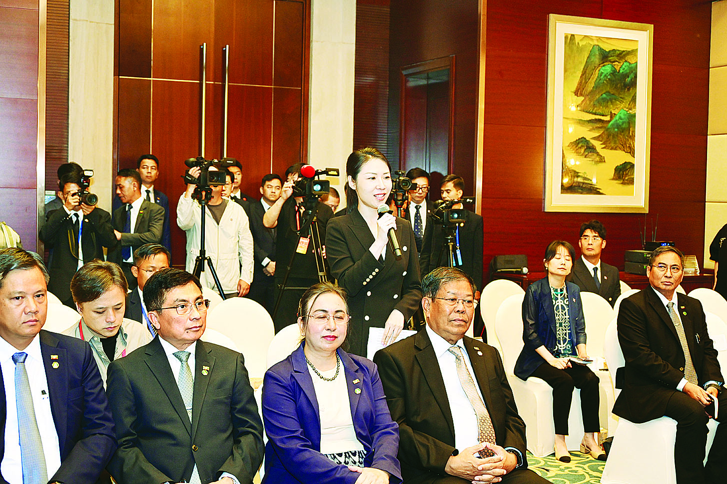 မေး။   ကျွန်မကတော့ ဆင်ဟွာသတင်းဌာနမှ ဖြစ်ပါတယ်။ ကျွန်မမေးချင်တာက နှစ်ချက်ရှိပါတယ်။ နံပါတ်တစ်က မြန်မာနိုင်ငံဟာ ရှန်ဟိုင်း SCO မိတ်ဖက်နိုင်ငံဖြစ်ပါတယ်။ အဆွေတော်ဟာဆိုရင် ကျွန်မတို့သမ္မတကြီးရဲ့ဖိတ်ခေါ်မှုနဲ့အတူ တီယန်ကျင်းမြို့မှာဆောင်ရွက်ခဲ့တဲ့ SCO Plus အစည်းအဝေးကို တက်ရောက်ခဲ့ပါတယ်။ အစည်းအဝေးမှာလည်း ကျွန်မတို့ရဲ့သမ္မတကြီးက Global Governance Initiative (GGI)ကိုပြောခဲ့ပါတယ်။ ဒါနဲ့ပတ်သက်ပြီးတော့ အဆွေတော်ဟာ သမ္မတကြီး ရှီကျင့်ဖျင်အဆိုပြုခဲ့တဲ့ အစီအမံနဲ့ပတ်သက်ပြီး ဘယ်လိုသဘောထားရှိပါသလဲ။ ပြီးတော့ အဲဒီအစီ အမံဟာ လက်ရှိကမ္ဘာကြီးမှာ ဘယ်လိုဟာမျိုးတွေသက်ရောက်မှုရှိပါသလဲ။ ဒါဟာ နံပါတ်တစ်မေးခွန်း ပါ။ နံပါတ်နှစ်မေးခွန်းဟာဆိုရင် ယခုနှစ်ဟာ တရုတ်-မြန်မာ သံတမန်ဆက်ဆံရေး ၇၅ နှစ် မြောက်ဖြစ်ခဲ့ပါပြီ။ သမ္မတကြီး ရှီကျင့်ဖျင်က တီယန်ကျင်းမှာ သမ္မတကြီးနဲ့ တွေ့ဆုံစဉ်မှာတော့ တရုတ်-မြန်မာဆက်ဆံရေးဟာ ဆွေမျိုးပေါက်ဖော်ဆက်ဆံရေးဖြစ်ပြီး ပြည်သူများမှပေါက်ဖွားလာတဲ့ သမိုင်းကြောင်းရှည်လျားတဲ့ ဆက်ဆံရေးဖြစ်ပါတယ်။ နှစ်ဖက်လုံးဟာဆိုရင်တော့ တရုတ်-မြန်မာ သံတမန်ဆက်ဆံရေး ၇၅ နှစ်အပေါ်မှာ မူတည်ပြီး နက်ရှိုင်းစွာ မဟာဗျူဟာပူးပေါင်းဆောင်ရွက်လျက်ရှိပါတယ်။ တရုတ်-မြန်မာ အေးအတူပူအမျှ အသိုက်အဝန်း တည်ဆောက်မှုကိုလည်း တွန်းအားပေးလျက်ရှိပြီး နှစ်နိုင်ငံပြည်သူများကိုလည်း သာယာဝပြောပြီး သုခများကိုလည်း သယ်ဆောင်လာတဲ့အတွက် ကျွန်မ မေးခွန်းကတော့ လက်ရှိအဆွေတော်အနေနဲ့ တရုတ်- မြန်မာနှစ်နိုင်ငံ ဆက်ဆံရေးဖွံ့ဖြိုးတိုးတက်မှုနဲ့ ပတ်သက်ပြီး ဘယ်လို Comment ပေးလိုပါ သလဲ။