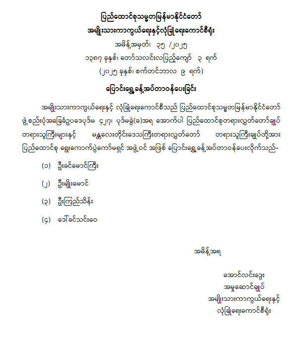 ပြောင်းရွှေ့ခန့်အပ်တာဝန်ပေးခြင်း