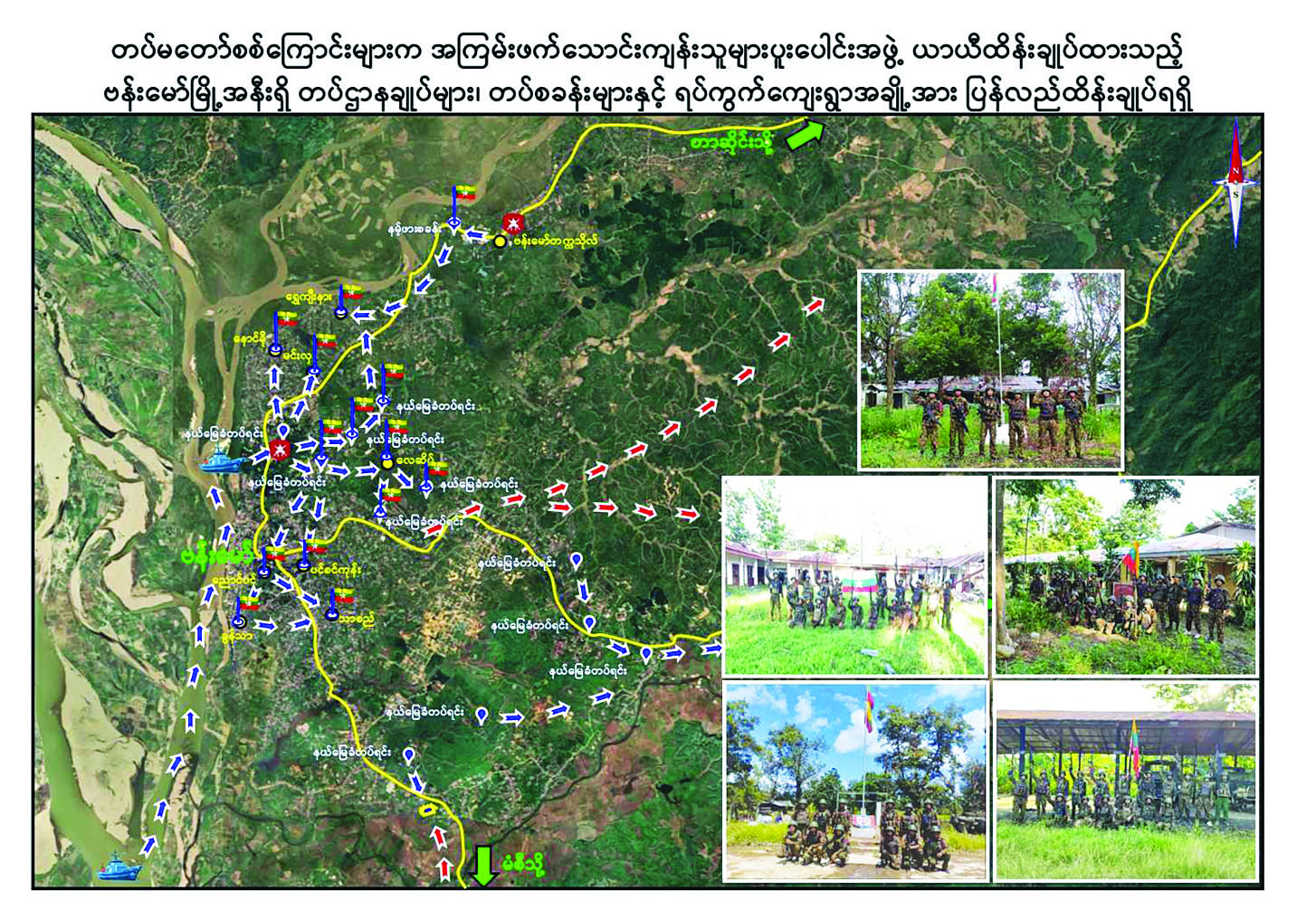 ထို့အပြင် အကြမ်းဖက်သောင်းကျန်းသူပူးပေါင်းအဖွဲ့များအနေဖြင့် ဗန်းမော်မြို့၏ ဆက်သွယ်ရေးလမ်းကြောင်းများအား ဖြတ်တောက်ပိတ်ဆို့ခြင်းများကြောင့် ဒေသတွင်း ကုန်စည် စီးဆင်းမှု ခေတ္တရပ်တန့်သွားခဲ့ရသဖြင့် ဒေသအတွင်း ကျန်ရှိသည့် ဒေသခံများ၏ စားရေး၌ အခက်အခဲ၊ အကျပ်အတည်းများဖြင့် ရင်ဆိုင်ကြုံတွေ့ခဲ့ရသည်။ သို့ဖြစ်၍ အစိုးရနှင့် တပ်မတော်မှ ဒေသခံပြည်သူများ၏ စားသောက်နေထိုင်ရေးအတွက် ဧရာဝတီမြစ်ကြောင်းအတိုင်း သင်္ဘောကြီးများဖြင့် လိုအပ်သည့် ထောက်ပံ့ပို့ဆောင်ရေးများ ဆောင်ရွက်ပေးခဲ့ရာတွင်လည်း အကြမ်းဖက်သောင်းကျန်းသူပူးပေါင်းအဖွဲ့များ ဧရာဝတီမြစ်ကြောင်းဝဲ/ယာတစ်လျှောက်ရှိ ကျေးရွာအချို့တွင် အတင်းအဓမ္မခြိမ်းခြောက်ဝင်ရောက်နေရာယူလျက် သင်္ဘောများအား အဝေးမှ နှောင့်ယှက်ပစ်ခတ်ခြင်း၊ Drone ဖြင့် Drop Bomb ချတိုက်ခိုက်ခြင်းစသည့် အဖျက်အမှောင့်လုပ်ရပ်ကို လုပ်ဆောင်ခဲ့သည်။