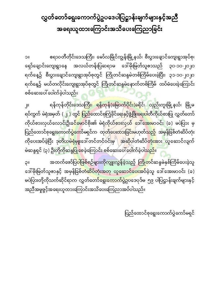 ၃။ အထက်ဖော်ပြပါဖြစ်စဉ်များကိုကျူးလွန်ခဲ့သည့် ကြိုတင်ဆန္ဒမဲနှစ်ကြိမ်ပေးခဲ့သူ ဒေါ်မိုးမြတ်သူဇာနှင့် အမှန်ခြစ်တံဆိပ်တုံးအတုယူဆောင်ပေးအပ်ခဲ့သူ ဒေါ်အေးမာဝင်း (ခ) မပဲပြားတို့ကိုသက်ဆိုင်ရာက လွှတ်တော် ရွေးကောက်ပွဲဥပဒေပုဒ်မ ၅၉ပါပြဋ္ဌာန်းချက်များနှင့် အညီအမှုဖွင့်အ ရေးယူထားကြောင်း အသိပေး ကြေညာအပ်ပါသည်။