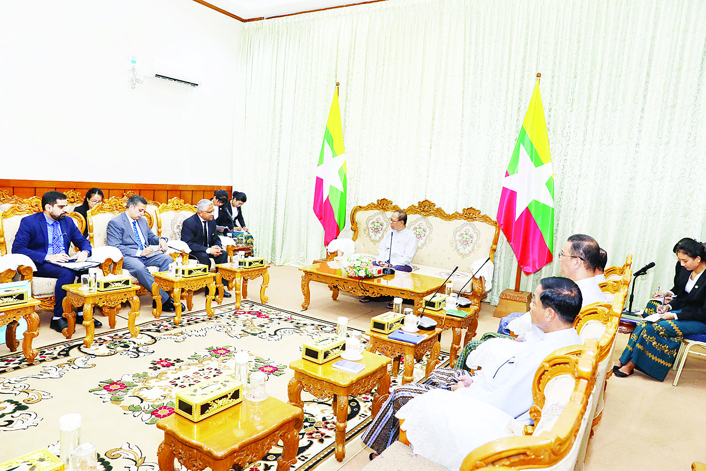ပြည်ထောင်စုရွေးကောက်ပွဲကော်မရှင်ဥက္ကဋ္ဌ ဦးသန်းစိုးသည် မြန်မာနိုင်ငံဆိုင်ရာ အိန္ဒိယနိုင်ငံ သံအမတ်ကြီး H.E. Mr. Abhay Thakur အား ယနေ့မွန်းလွဲပိုင်းတွင် နေပြည်တော်ရှိ ပြည်ထောင်စုရွေးကောက်ပွဲကော်မရှင်ရုံး ဧည့်တွေ့ခန်းမဆောင်၌ လက်ခံတွေ့ဆုံသည်။