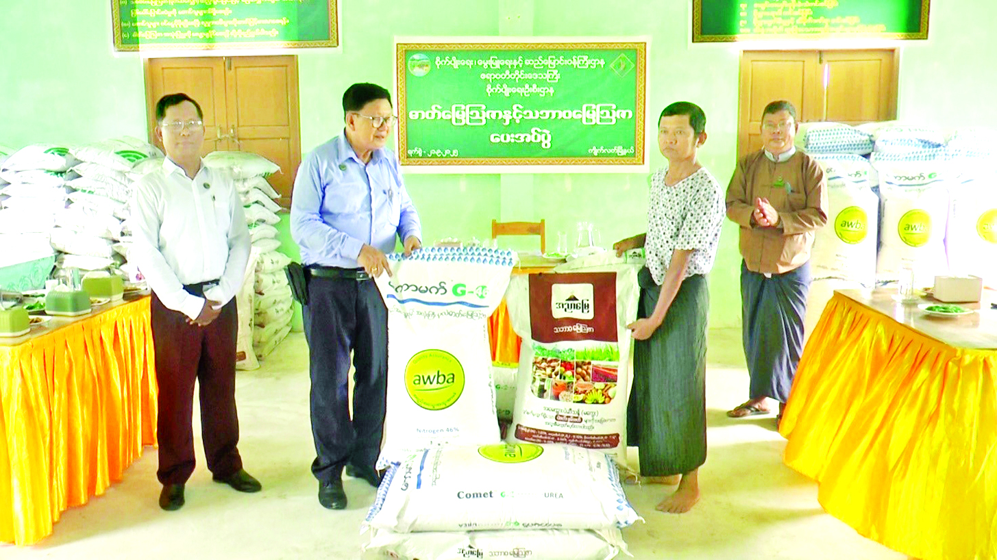 ယင်းနောက် စိုက်ပျိုးရေးဦးစီးဌာန နည်းပညာပြန့်ပွားရေးစင်တာ၌ ဒေသခံတောင်သူများနှင့် တွေ့ဆုံကာ ဓာတ်မြေသြဇာ အသုံးပြုမှုလျှော့ချခြင်းဖြင့် ရေရှည်တည်တံ့သော စိုက်ပျိုးရေးကို အကျိုးဖြစ်စေရေး၊ မြေဆီလွှာ ၏ ဂုဏ်သတ္တိ၊ ဓာတ်ဂုဏ်သတ္တိနှင့် ဇီဝဂုဏ်သတ္တိများ ထိခိုက်ပျက်စီး မှုကင်းဝေးပြီး မြေဆီလွှာ၏ ကျန်းမာရေးကောင်းမွန်စေရေး၊ သစ်စိမ်းမြေသြဇာ (ပိုက်ဆံလျှော်) ထည့်သွင်းခြင်းဖြင့် မြေဆီလွှာအတွင်း အာဟာရဓာတ်ဖြစ်ပေါ်ပြောင်းလဲမှုကို အထောက်အကူဖြစ်စေရေးတို့နှင့်ပတ်သက်၍ ရှင်းလင်းဆွေးနွေးပြီး တောင်သူများအား သွင်းအားစုသဘာဝမြေဩဇာနှင့် ဓာတ်မြေဩဇာများ ပေးအပ်ခဲ့ကြောင်း သိရသည်။