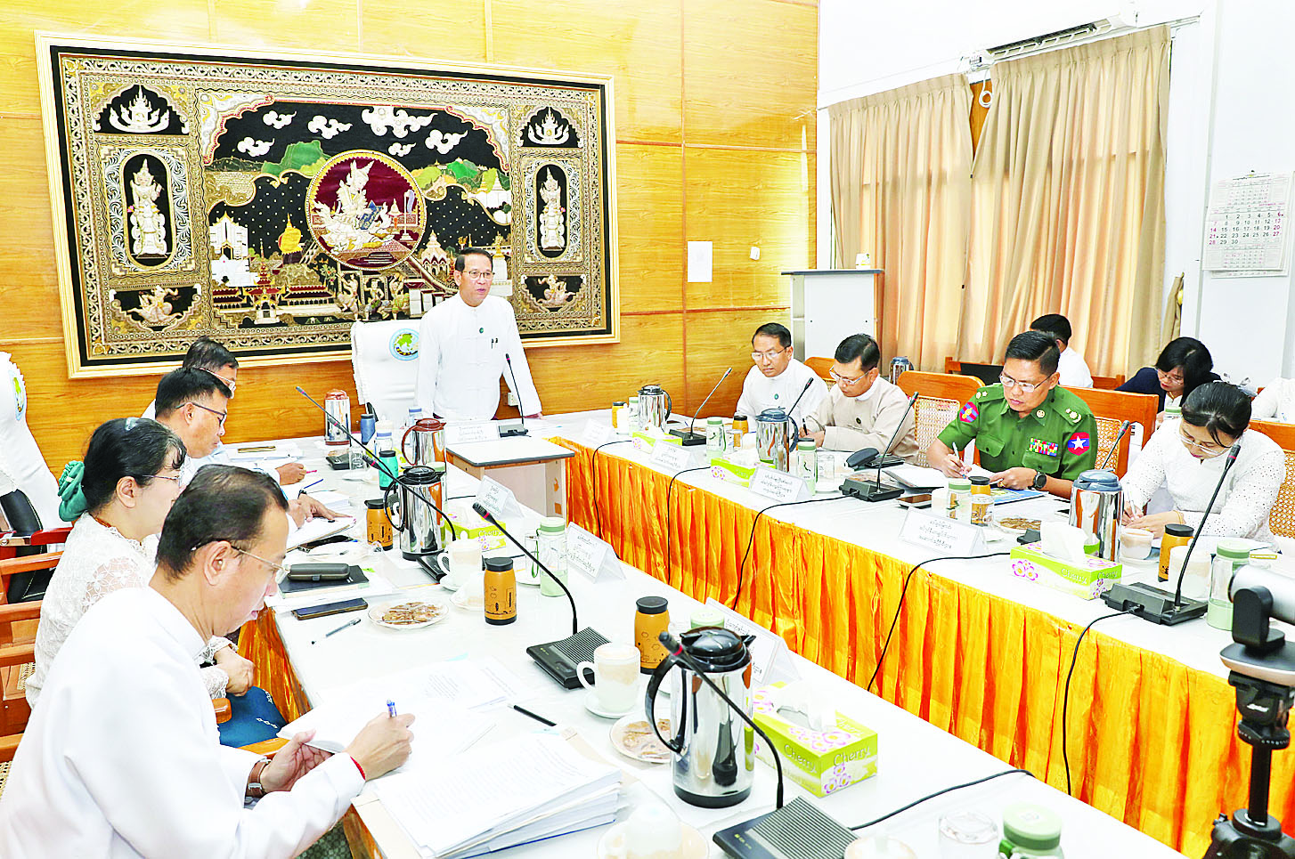 အစည်းအဝေးသို့ ပြည်ထောင်စုဝန်ကြီး ဦးမောင်မောင်အုန်း၊ ဒုတိယဝန်ကြီး ဦးရဲတင့်၊ အမြဲတမ်းအတွင်းဝန်၊ ဌာနဆိုင်ရာတာဝန်ရှိသူများ၊ ကာကွယ်ရေးဝန်ကြီးဌာန စစ်အင်ဂျင်နီယာညွှန်ကြားရေးမှူးရုံးမှ တာဝန်ရှိသူများ တက်ရောက်ကြပြီး ရန်ကုန်မြို့တော်လျှပ်စစ်ဓာတ်အားပေးရေးကော်ပိုရေးရှင်းဥက္ကဋ္ဌ ဦးအောင်ကျော်ဦး၊ ရန်ကုန်မြို့တော် စည်ပင်သာယာရေးကော်မတီ ဒုတိယမြို့တော်ဝန် ဦးညီညီ၊ မြန်မာနိုင်ငံရုပ်ရှင်အစည်းအရုံးဥက္ကဋ္ဌ၊ မြန်မာနိုင်ငံသဘင်အစည်းအရုံးဥက္ကဋ္ဌ၊ မြန်မာနိုင်ငံဂီတအစည်းအရုံးဥက္ကဋ္ဌ၊ မြန်မာနိုင်ငံဗိသုကာကောင်စီဥက္ကဋ္ဌနှင့် တာဝန်ရှိသူများက အွန်လိုင်းမှတက်ရောက်ကြသည်။
