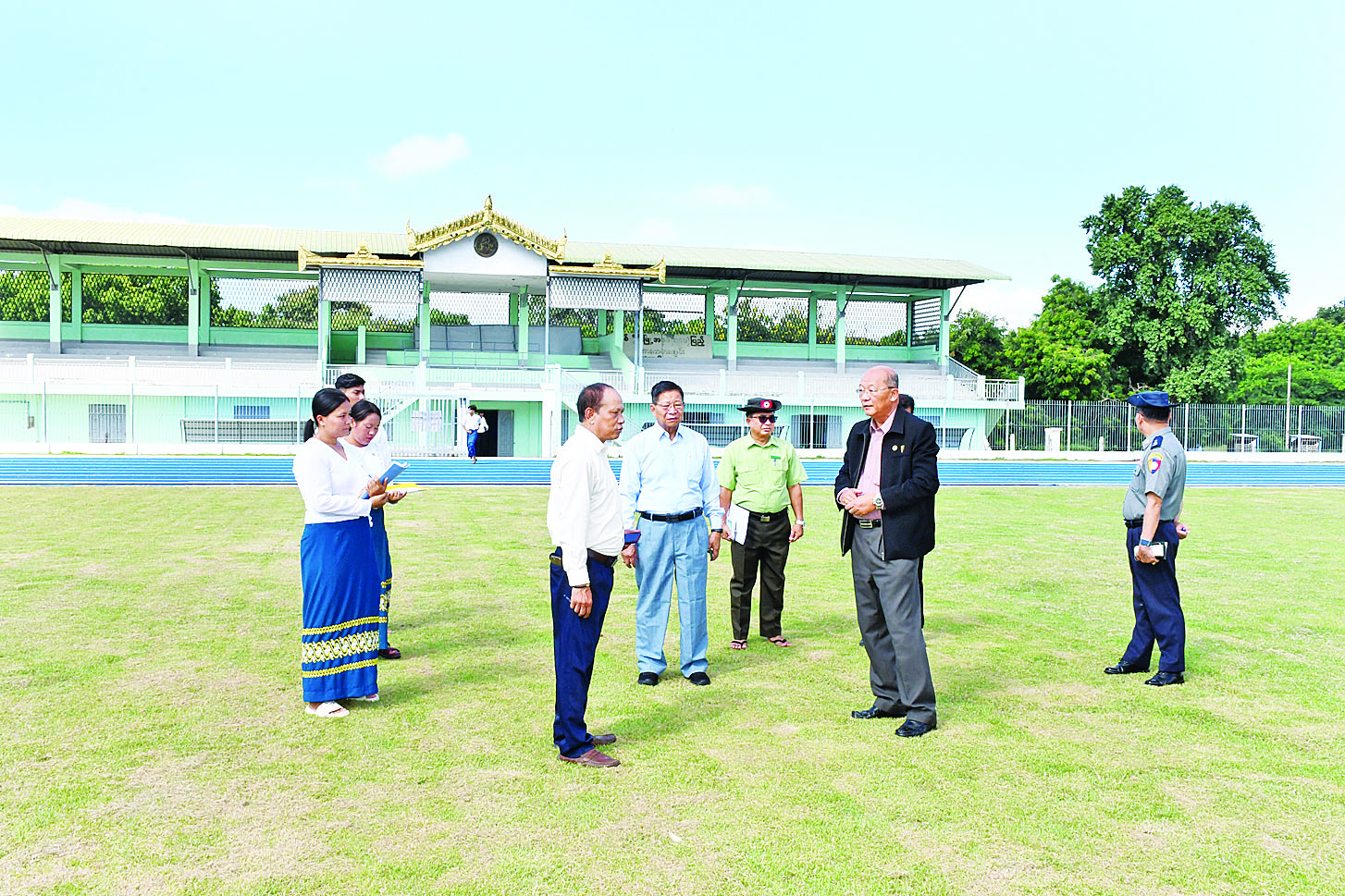 မြန်မာနိုင်ငံအိုလံပစ်ကော်မတီဥက္ကဋ္ဌ၊ အားကစားနှင့်လူငယ်ရေးရာဝန်ကြီးဌာနနှင့် ဟိုတယ်နှင့်ခရီးသွားလာရေးဝန်ကြီးဌာန ပြည်ထောင်စုဝန်ကြီး Jeng Phang နော်တောင်သည် တိုင်းဒေသကြီး အားကစားနှင့်ကာယပညာဦးစီးဌာန ညွှန်ကြားရေးမှူးများနှင့်အတူ ယနေ့နံနက်ပိုင်းတွင် စစ်ကိုင်းတိုင်းဒေသကြီး စစ်ကိုင်းမြို့နယ်ရှိ နှစ် (၇၀၀) ပြည့် အားကစားကွင်းနှင့် ပိုးတန်းအားကစားကွင်းရှိ အားကစားကွင်း/အားကစားရုံတို့ကို လိုက်လံကြည့်ရှုစစ်ဆေးသည်။