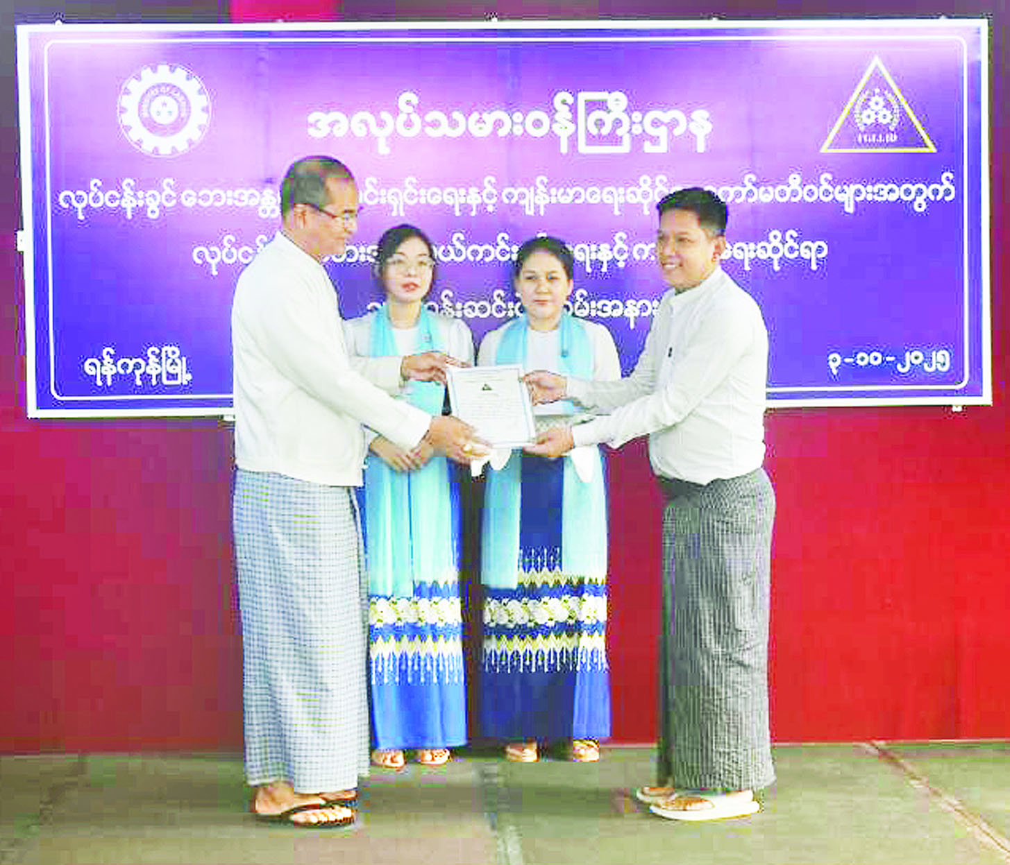 လုပ်ငန်းခွင်ဘေးအန္တရာယ်ကင်းရှင်းရေးနှင့် ကျန်းမာရေးဆိုင်ရာ ကော်မတီဝင်များအတွက် လုပ်ငန်းခွင်ဘေးအန္တရာယ်ကင်းရှင်းရေးနှင့် ကျန်းမာရေးဆိုင်ရာ သင်တန်းအမှတ်စဉ် (၁၆/၂၀၂၅) သင်တန်းဆင်းပွဲကို ယနေ့နံနက်ပိုင်းတွင် ရန်ကုန်တိုင်းဒေသကြီး လှိုင်သာယာမြို့နယ်ရှိ အမျိုးသားလုပ်ငန်းခွင် ဘေးအန္တရာယ်ကင်းရှင်းရေးနှင့် ကျန်းမာရေးဆိုင်ရာ သင်တန်းကျောင်း၌ ကျင်းပသည်။