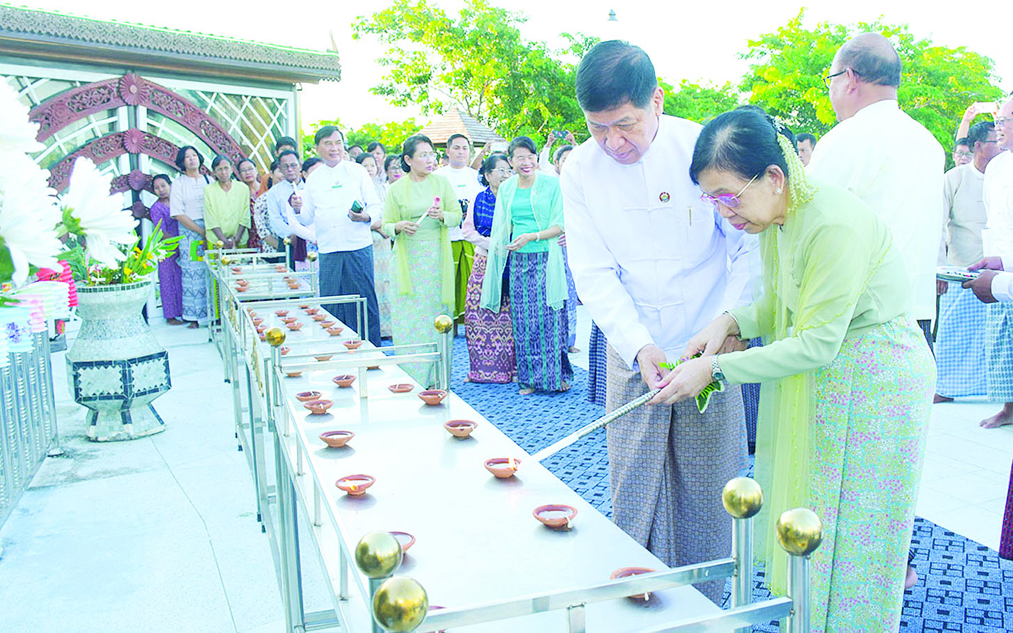 အခမ်းအနားတွင် မန္တလေးတိုင်းဒေသကြီးဝန်ကြီးချုပ် ဦးမျိုးအောင်နှင့်ဇနီး၊ တိုင်းဒေသကြီးတရားလွှတ်တော်တရားသူကြီးချုပ်၊ တိုင်းဒေသကြီးဝန်ကြီးများနှင့် ၎င်းတို့၏ဇနီးများ၊ ဂေါပကဥက္ကဋ္ဌနှင့်အဖွဲ့ဝင်များ၊ ဧည့်ပရိသတ်များနှင့် အလှူရှင်များ၊ ဘုရားဖူးလာရောက်ကြသည့် ပြည်သူများက မြတ်ဗုဒ္ဓကိုကြည်ညိုစိတ်ဖြင့်ရည်မှန်း၍ အတူတကွ ဆီမီးများ ထွန်းညှိပူဇော်ကြသည်။