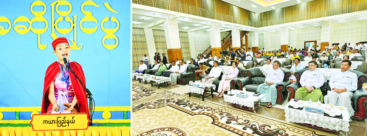 ထို့အတူ အရေးပြိုင်ပွဲကို သာသနာရေးနှင့် ယဉ်ကျေးမှု ဝန်ကြီးဌာန ယဉ်ကျေးမှုရတနာ ခန်းမ၌ ကျင်းပရာ အဆင့်မြင့်ပညာ (အမျိုးသား/အမျိုးသမီး) ပြိုင်ပွဲတွင် ကယားပြည်နယ်၊ ချင်း ပြည်နယ်၊ မွန်ပြည်နယ်၊ ရခိုင်ပြည်နယ်၊ ရှမ်းပြည်နယ်၊ စစ်ကိုင်းတိုင်းဒေသကြီး၊ တနင်္သာရီတိုင်း ဒေသကြီး၊ ပဲခူးတိုင်းဒေသကြီး၊ မကွေးတိုင်းဒေသကြီး၊ မန္တလေးတိုင်းဒေသကြီး၊ ရန်ကုန်တိုင်း ဒေသကြီးနှင့် ဧရာဝတီတိုင်းဒေသကြီးတို့မှ ပြိုင်ပွဲဝင်များက “လူချွန်လူကောင်းတို့ဂုဏ်ရည်” ခေါင်းစဉ်ဖြင့်လည်းကောင်း၊ အခြေခံပညာ (အသက် ၁၅ နှစ်မှ ၂၀ အတွင်း) အမျိုးသား/အမျိုး သမီးပြိုင်ပွဲတွင် ကချင်ပြည်နယ်၊ ကရင်ပြည်နယ်၊ ချင်းပြည်နယ်၊ မွန်ပြည်နယ်၊ ရခိုင်ပြည်နယ်၊ စစ်ကိုင်းတိုင်းဒေသကြီး၊ ပဲခူးတိုင်းဒေသကြီး၊ မကွေးတိုင်းဒေသကြီး၊ မန္တလေးတိုင်းဒေသကြီး၊ ရန်ကုန်တိုင်းဒေသကြီးနှင့် ဧရာဝတီတိုင်းဒေသကြီးတို့မှ ပြိုင်ပွဲဝင်များက “ကျောင်းနေစဉ်” ခေါင်းစဉ်ဖြင့်လည်းကောင်း ဂီတရသစုံလင်စွာ ဖော်ကျူးတေးဖွဲ့ ယှဉ်ပြိုင်ကြသည်။