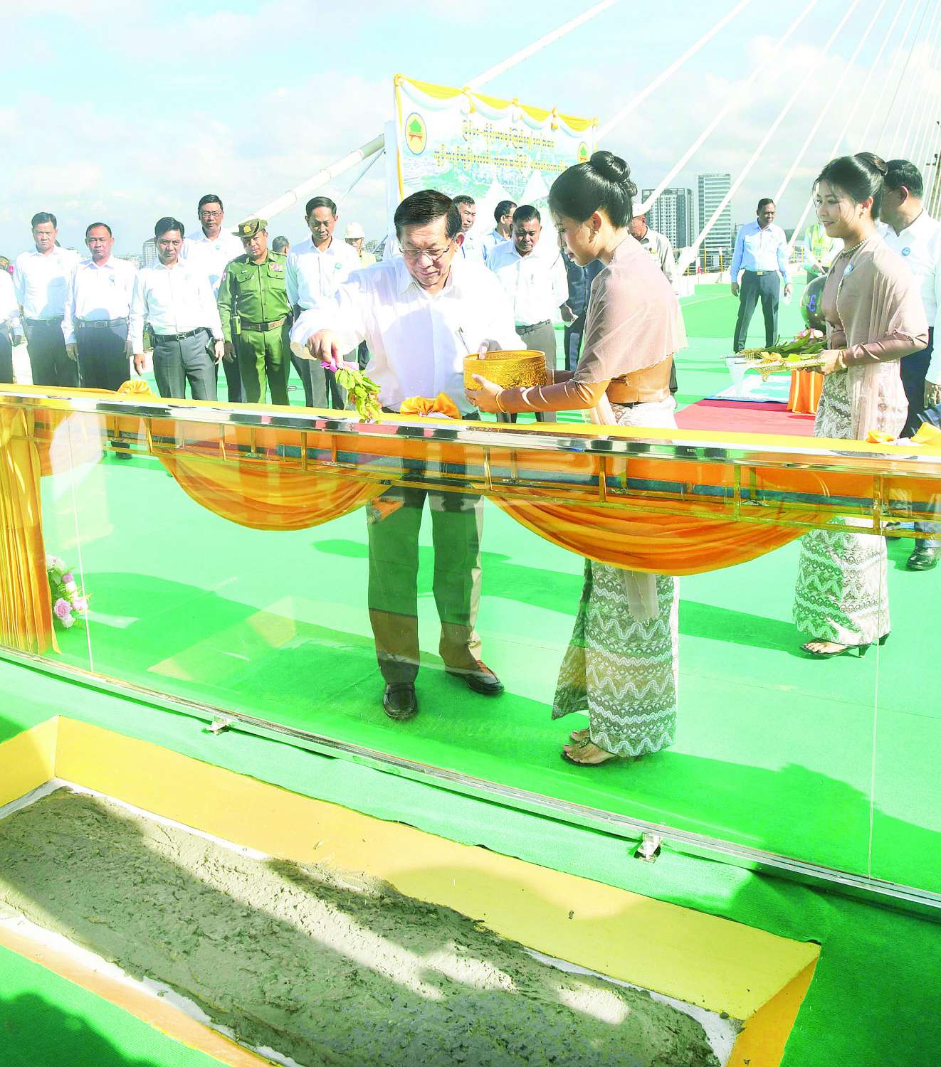 ပြည်ထောင်စုသမ္မတမြန်မာနိုင်ငံတော် ယာယီသမ္မတ နိုင်ငံတော်လုံခြုံရေးနှင့် အေးချမ်းသာယာရေးကော်မရှင် ဥက္ကဋ္ဌ ဗိုလ်ချုပ်မှူးကြီး မင်းအောင်လှိုင် မြန်မာ-ကိုရီးယား နှစ်နိုင်ငံချစ်ကြည်ရေး(ဒလ)တံတား ကွန်ကရစ်သွန်းလောင်းတံတားဆက်ခြင်း မဟာမင်္ဂလာအခမ်းအနားသို့ တက်ရောက်ချီးမြှင့်