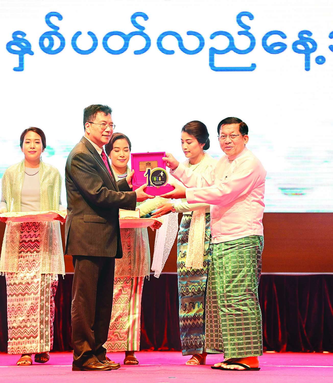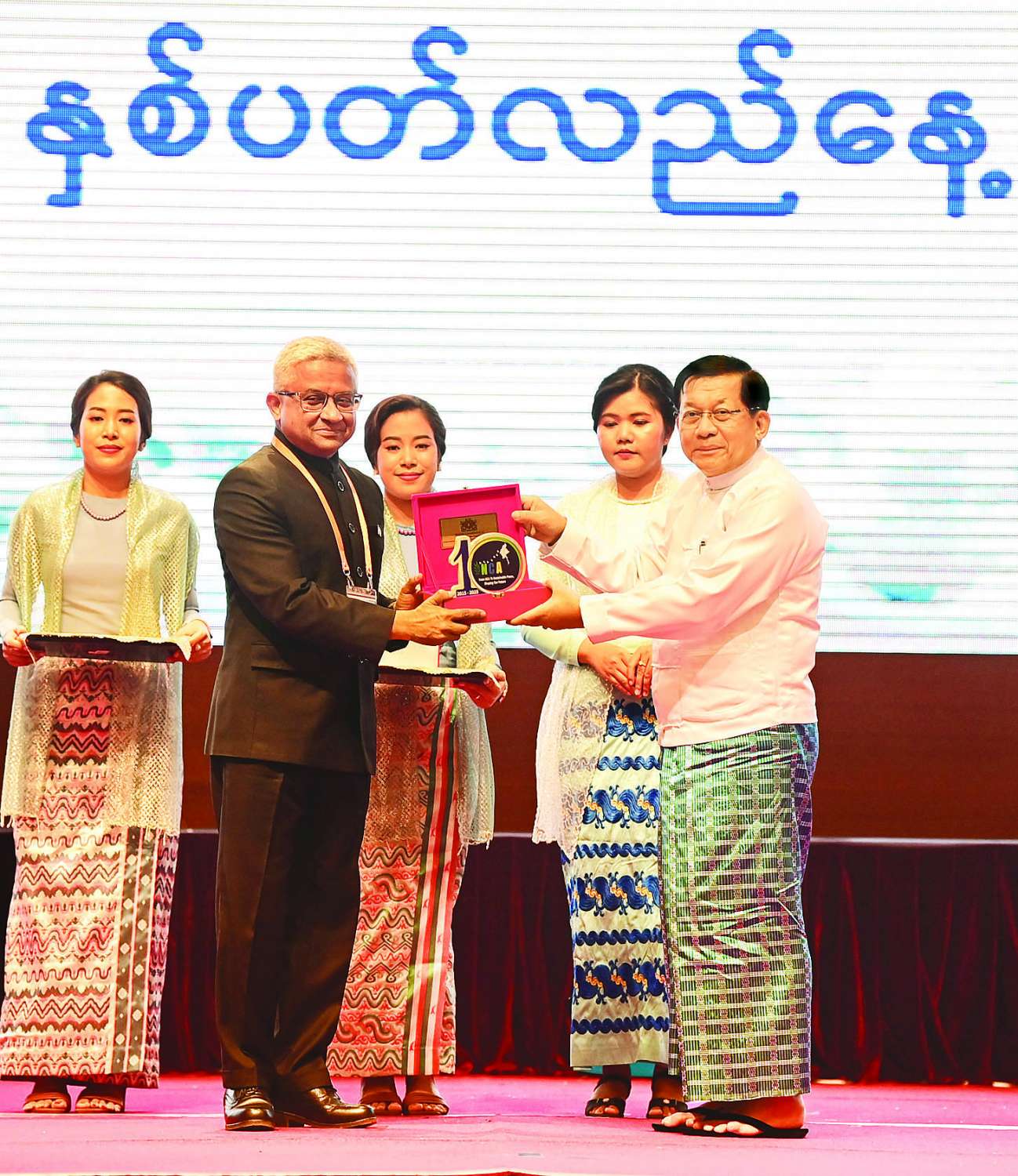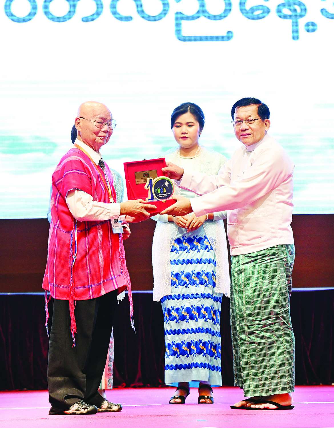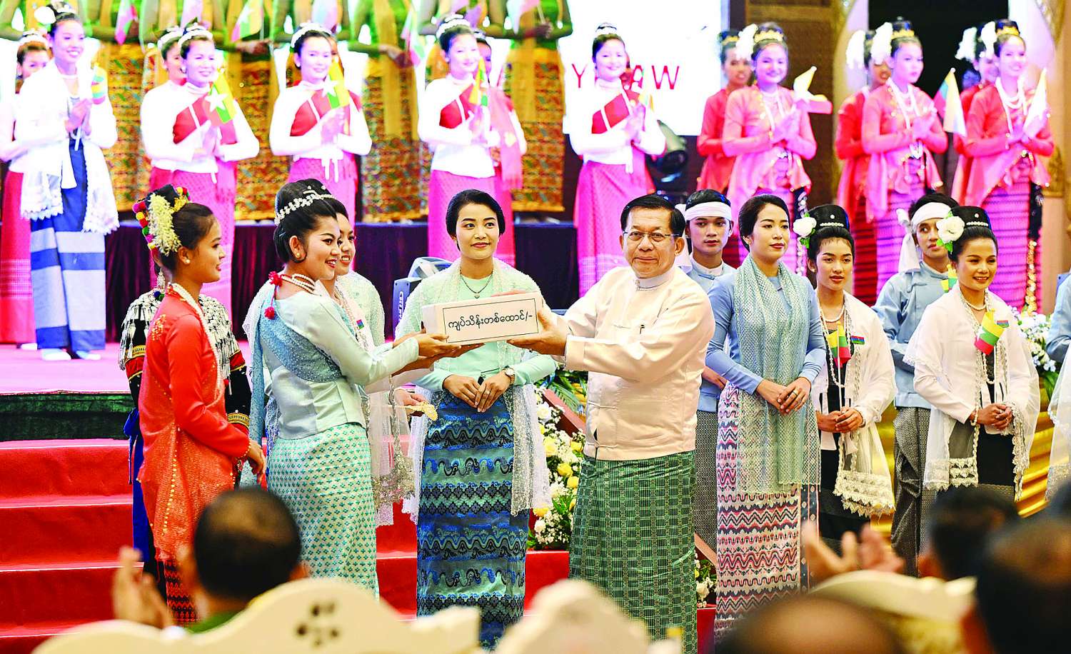ယင်းနောက် နိုင်ငံတော်ယာယီသမ္မတ နိုင်ငံတော်လုံခြုံရေးနှင့် အေးချမ်းသာယာရေးကော်မရှင် ဥက္ကဋ္ဌ အမျိုးသားစည်းလုံးညီညွတ်ရေးနှင့် ငြိမ်းချမ်းရေးဖော်ဆောင်မှုဗဟိုကော်မတီ ဥက္ကဋ္ဌ ဗိုလ်ချုပ်မှူးကြီး မင်းအောင်လှိုင်သည် ပြန်ကြားရေးဝန်ကြီးဌာန မြန်မာ့အသံနှင့်ရုပ်မြင်သံကြား၊ သာသနာရေးနှင့်ယဉ်ကျေးမှုဝန်ကြီးဌာန၊ အနုပညာဦးစီးဌာနတို့မှ အကအဖွဲ့များနှင့် တိုင်းရင်းသားအကအဖွဲ့များကို “ငြိမ်းချမ်းရေးဂုဏ်ပြုပန်းခြင်း” နှင့် ဂုဏ်ပြုချီးမြှင့်ငွေ သိန်း ၁၀၀၀ အား ပေးအပ်ချီးမြှင့်ပြီး တိုင်းရင်းသားအကအဖွဲ့များနှင့်အတူ စုပေါင်းမှတ်တမ်းတင်ဓာတ်ပုံရိုက်ကူးကြသည်။ အခမ်းအနားအပြီးတွင် နိုင်ငံတော်ယာယီသမ္မတ နိုင်ငံတော်လုံခြုံရေးနှင့် အေးချမ်းသာယာရေးကော်မရှင် ဥက္ကဋ္ဌ အမျိုးသားစည်းလုံးညီညွတ်ရေးနှင့် ငြိမ်းချမ်းရေးဖော်ဆောင်မှု ဗဟိုကော်မတီ ဥက္ကဋ္ဌ ဗိုလ်ချုပ်မှူးကြီး မင်းအောင်လှိုင်သည် တစ်နိုင်ငံလုံး ပစ်ခတ်တိုက်ခိုက်မှုရပ်စဲရေး သဘောတူစာချုပ် (NCA) (၁၀)နှစ်ပြည့် နှစ်ပတ်လည်နေ့ အခမ်းအနားသို့ တက်ရောက်လာကြသူများကို ဂုဏ်ပြုနေ့လယ်စာဖြင့် တည်ခင်းဧည့်ခံခဲ့ကြောင်း သတင်းရရှိသည်။