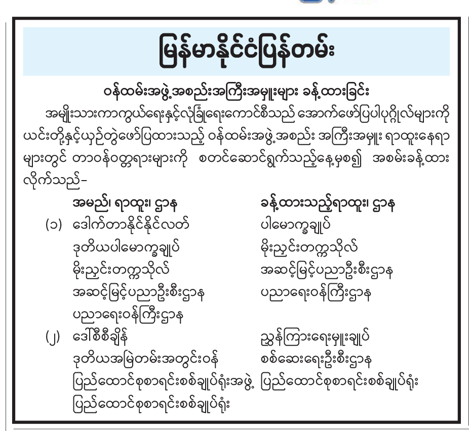ဝန်ကြီးဌာနအကြောင်း