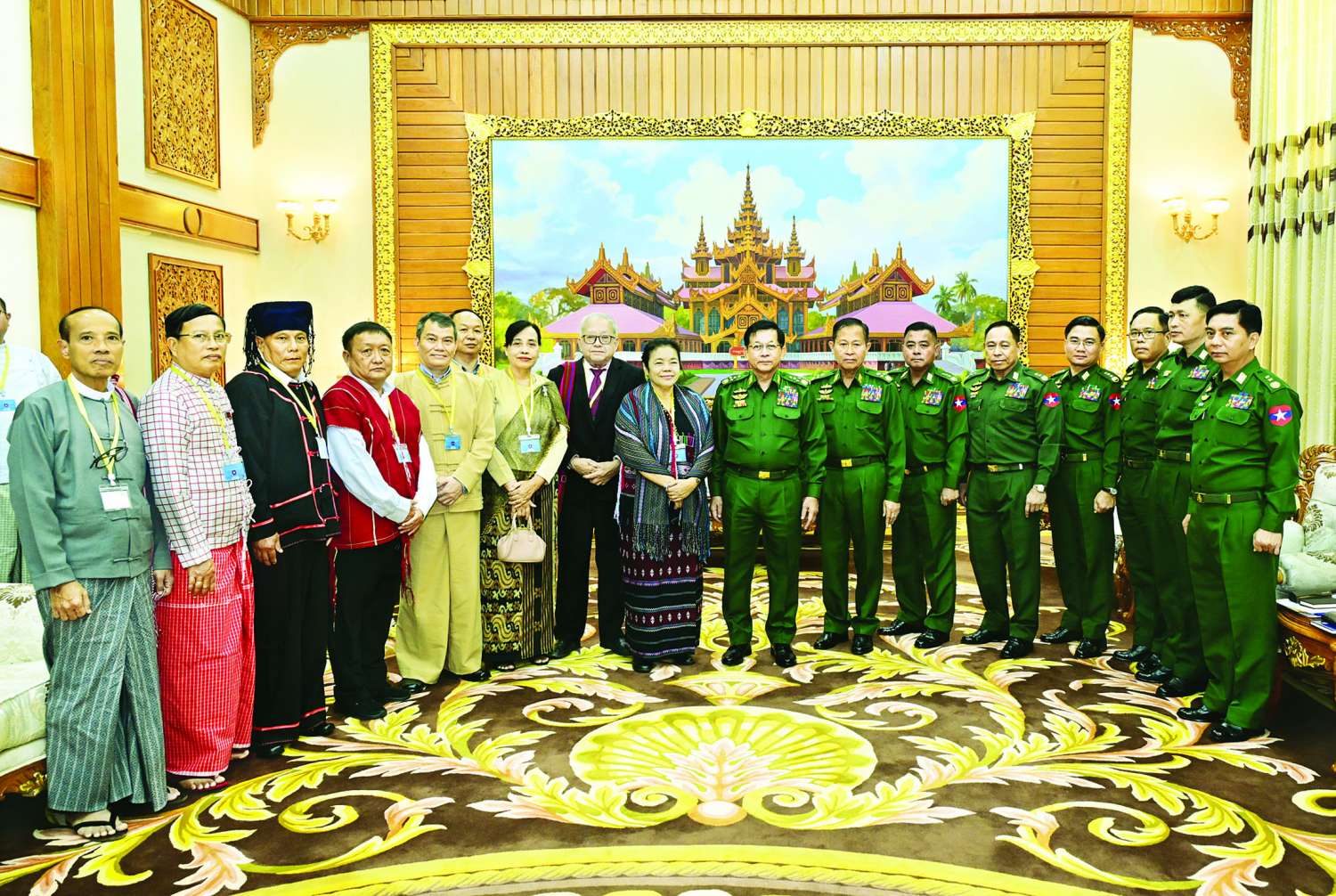 နိုင်ငံတော်လုံခြုံရေးနှင့်အေးချမ်းသာယာရေးကော်မရှင်ဥက္ကဋ္ဌ တပ်မတော်ကာကွယ်ရေးဦးစီးချုပ် ဗိုလ်ချုပ်မှူးကြီး မင်းအောင်လှိုင်ထံသို့ ငြိမ်းချမ်းရေးဆွေးနွေးပွဲသို့ တက်ရောက်ခဲ့သည့် တိုင်းရင်းသားလက်နက်ကိုင်ကိုယ်စားလှယ်အဖွဲ့များက လာရောက်ဂါရဝပြုတွေ့ဆုံ