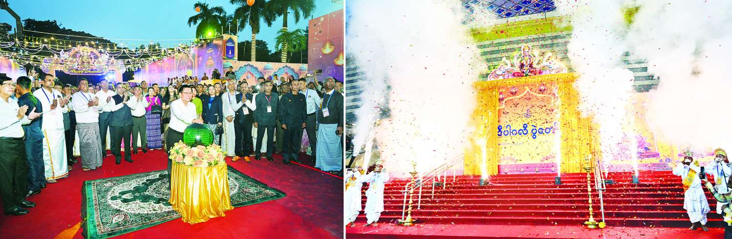 ပြည်ထောင်စုသမ္မတမြန်မာနိုင်ငံတော်ယာယီသမ္မတ နိုင်ငံတော်လုံခြုံရေးနှင့် အေးချမ်းသာယာရေးကော်မရှင်ဥက္ကဋ္ဌ ဗိုလ်ချုပ်မှူးကြီး မင်းအောင်လှိုင် ဟိန္ဒူဘာသာဝင်များ၏ ဒီပါဝလီအထိမ်းအမှတ်အခမ်းအနားသို့ တက်ရောက်ချီးမြှင့်
