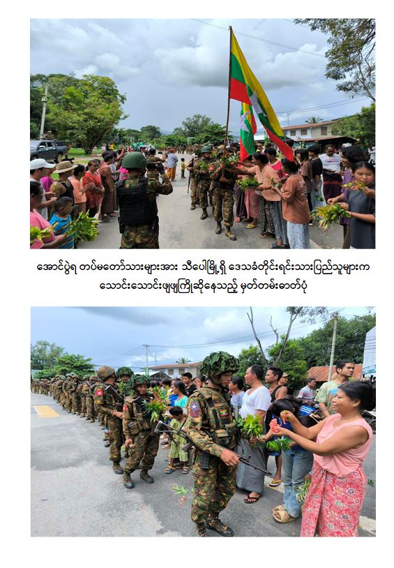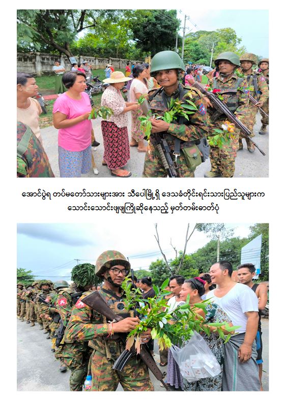 တပ်မတော်စစ်ကြောင်းများအနေဖြင့် နောင်ချိုမြို့နှင့် ကျောက်မဲမြို့တို့၌ ပြန်လည်ထူထောင်ရေးလုပ်ငန်းများ ဆောင်ရွက်ပေးသကဲ့သို့ပင် သီပေါမြို့မှ ယာယီနေရပ်စွန့်ခွာနေကြရသည့် ဒေသခံတိုင်းရင်းသားမိဘပြည်သူများ ပြည်ဝင်ရောက်၍ အေးချမ်းစွာ လုပ်ကိုင်စားသောက်နေထိုင်နိုင်ရေး၊ အစိုးရအုပ်ချုပ်မှုယန္တရားများ ပြန်လည်လည်ပတ်နိုင်ရေး၊ ကျောင်းများ၊ ဆေးရုံ/ဆေးခန်းများ အမြန်ဆုံးဖွင့်လှစ်နိုင်ရေး ဆောင်ရွက်ပေးမည်ဖြစ်ရာ ပြည်သူလူထု၏ လူမှုဘဝတိုးတက်မြင့်မားရေးလုပ်ငန်းများ ပြန်လည်ဆောင်ရွက်နိုင်တော့မည် ဖြစ်သည့်အတွက် ဒေသခံတိုင်းရင်း သားပြည်သူများအနေဖြင့် ဝမ်းမြောက်ပျော်ရွှင်လျက်ရှိသကဲ့သို့ပင် မြန်မာတစ်ပြည်လုံးရှိ ပြည်သူများကလည်း ယခုကဲ့သို့ တပ်မတော်၏ အောင်မြင်မှုများအတွက် ထပ်တူဂုဏ်ယူဝမ်းမြောက်လျက်ရှိပြီး ရှေ့တန်းရောက်တပ်မတော်သားများအတွက် နိုင်ငံတစ်ဝှမ်းရှိ စေတနာရှင်အလှူရှင်များက ဂုဏ်ပြုချီးမြှင့်ငွေများ၊ စားသောက်ဖွယ်ရာများနှင့် အသုံးအဆောင်ပစ္စည်းများအား ပေးပို့လှူဒါန်းလျက်ရှိရာ သက်ဆိုင်ရာ တာဝန်ရှိသူများကလည်း ရှေ့တန်းရောက် တပ်မတော်သားများ၏ လက်ဝယ်အရောက် ပို့ဆောင်ပေးလျက်ရှိသည်။