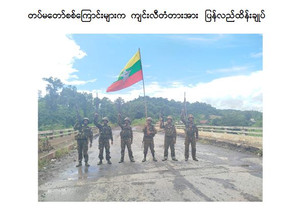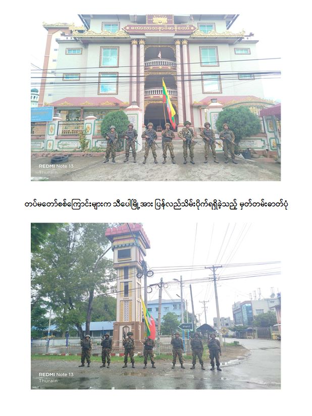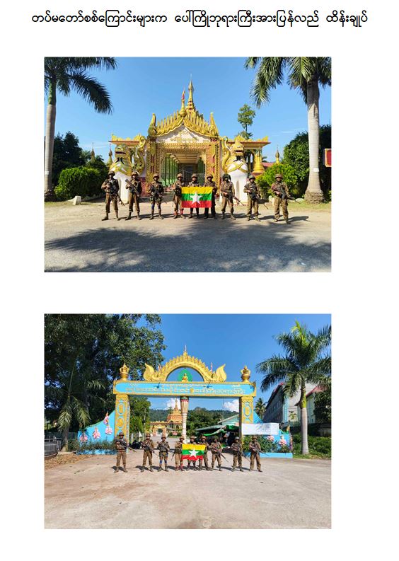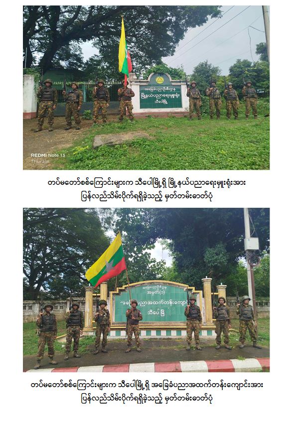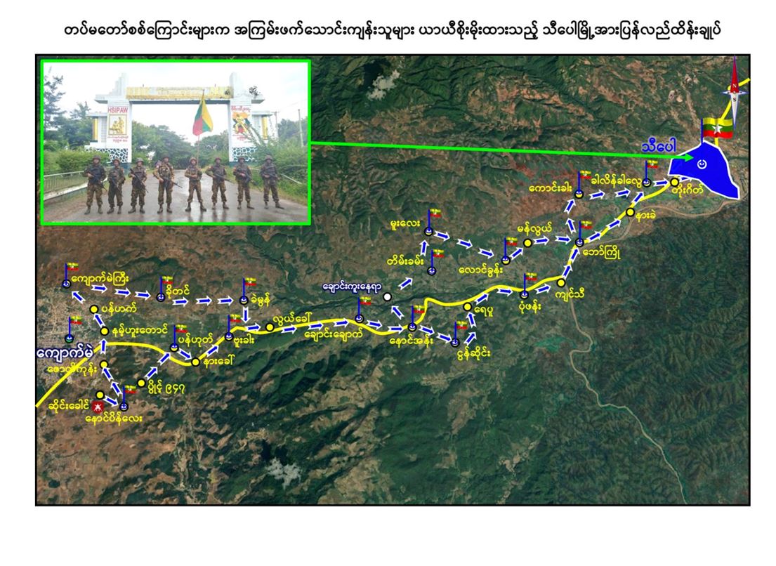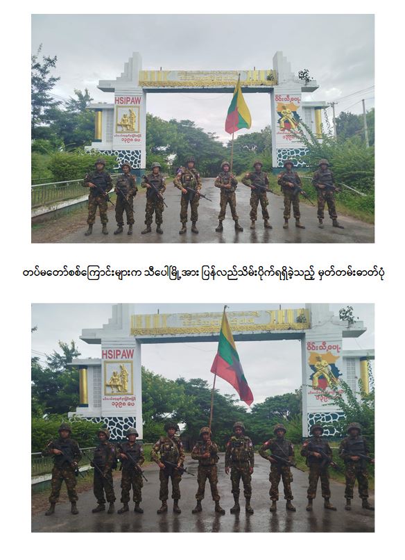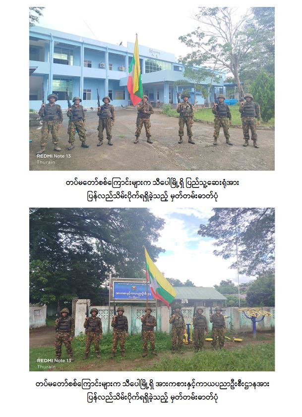ထို့ပြင် တပ်မတော်စစ်ကြောင်းများ သီပေါမြို့အဝင် Toll Gate သို့ ရောက်ရှိစဉ် TNLA အကြမ်းဖက်သောင်းကျန်းသူများသည် သီပေါမြို့အတွင်းရှိ ဌာနဆိုင်ရာအဆောက်အအုံများနှင့် ပြည်သူပိုင်အဆောက်အအုံများအား မီးရှို့ထွက်ပြေးသွားခဲ့သဖြင့် တပ်မတော်စစ်ကြောင်းက မြို့အတွင်းသို့ အလျင်အမြန်ဝင်ရောက်ရှင်းလင်း၍ အခြားအဆောက်အအုံများ မီးကူးစက်မှုမရှိစေရေး မီးငြိမ်းသက်ရေးလုပ်ငန်းများနှင့် မြို့တွင်းလုံခြုံရေးလုပ်ငန်းများကို ဆောင်ရွက်ခဲ့ရာ အောက်တိုဘာ ၁၆ ရက် ညနေပိုင်းတွင် သီပေါမြို့အား တပ်မတော်က အပြီးတိုင် ပြန်လည်ထိန်းချုပ်နိုင်ခဲ့သည်။ အလားတူ သီပေါမြို့အနီးဝန်းကျင်သို့ ရောက်ရှိနေသည့် တပ်မတော်စစ်ကြောင်းအနေဖြင့်လည်း စိတ်ဓာတ်ကျဆင်းစွာ ဖရိုဖရဲဖြင့် သီပေါမြို့၏ မြောက်ဘက်သို့ ဆုတ်ခွာထွက်ပြေးလျက်ရှိသည့် အကြမ်းဖက်သောင်းကျန်းသူများအား ထပ်ကြပ်လိုက်လံ တိုက်ခိုက်ချေမှုန်းလျက် နယ်မြေစိုးမိုးရေးလုပ်ငန်းများ ဆောင်ရွက်လျက်ရှိကြောင်း သိရှိရသည်။
