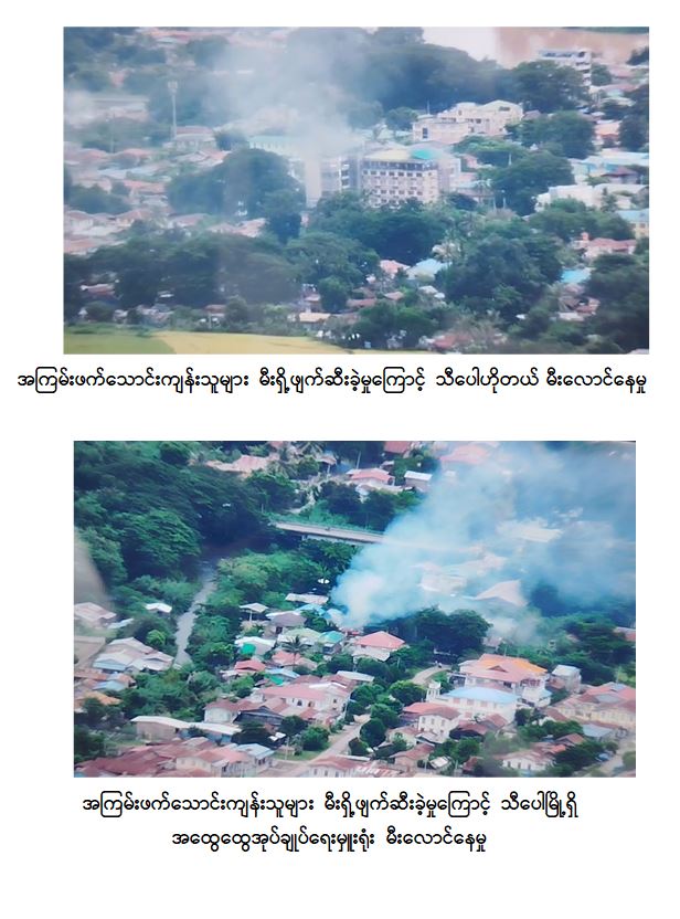 TNLA အကြမ်းဖက်သောင်းကျန်းသူများသည် သီပေါမြို့မှ ဆုတ်ခွာထွက်ပြေးစဉ် နောင်ချိုမြို့နှင့် ကျောက်မဲမြို့များတွင် လုပ်ဆောင်ခဲ့သည့် ၎င်းတို့၏ အကြမ်းဖက်လမ်းစဉ်နည်းလမ်းအတိုင်း လုပ်ဆောင်လျက်ရှိသည့် စစ်ရေးနှင့်သက်ဆိုင်ခြင်းမရှိသည့် သီပေါမြို့ရှိ အကျဉ်းဦးစီးဌာန၊ အထွေထွေအုပ်ချုပ်ရေးမှူးရုံး၊ မြေစာရင်းရုံး၊ သီပေါဟိုတယ်အပါအဝင် အခြားဌာနဆိုင်ရာ အဆောက်အအုံများနှင့် ပြည်သူလူထု၏ နေအိမ်များအား ရက်စက်ယုတ်မာရှိုင်းစိုင်းစွာ မီးရှို့ထွက်ပြေးသွားခဲ့ပြီး ၎င်းတို့ခေတ္တထိန်းချုပ်စဉ်ကာလအတွင်း မြို့/ရွာများအတွင်းရှိ ဌာနဆိုင်ရာအဆောက်အအုံများ၊ ဆေးရုံများနှင့်လူနေအိမ်များတွင် ဘန်ကာများဆောက်လုပ်ပြီး တပ်မတော်စစ်ကြောင်းများအား ပစ်ခတ်တိုက်ခိုက်ခြင်း၊ ဒေသခံပြည်သူများ၏ အိုးအိမ်များကို ခံစစ်တံတိုင်းအဖြစ် အကာအကွယ်ရယူ၍ ပစ်ခတ်တိုက်ခိုက်ခြင်းများကို လုပ်ဆောင်ခဲ့သည့်အပြင် ဒေသခံပြည်သူများ နေအိမ်များနှင့် ဈေးဆိုင်ခန်းများအား ဖောက်ထွင်း၍ တန်ဖိုးကြီးပစ္စည်းများ၊ စားသောက်ကုန်နှင့် အသုံးအဆောင်ပစ္စည်းများကို အဓမ္မယူဆောင်ခြင်းများ လုပ်ဆောင်ခဲ့သည်။